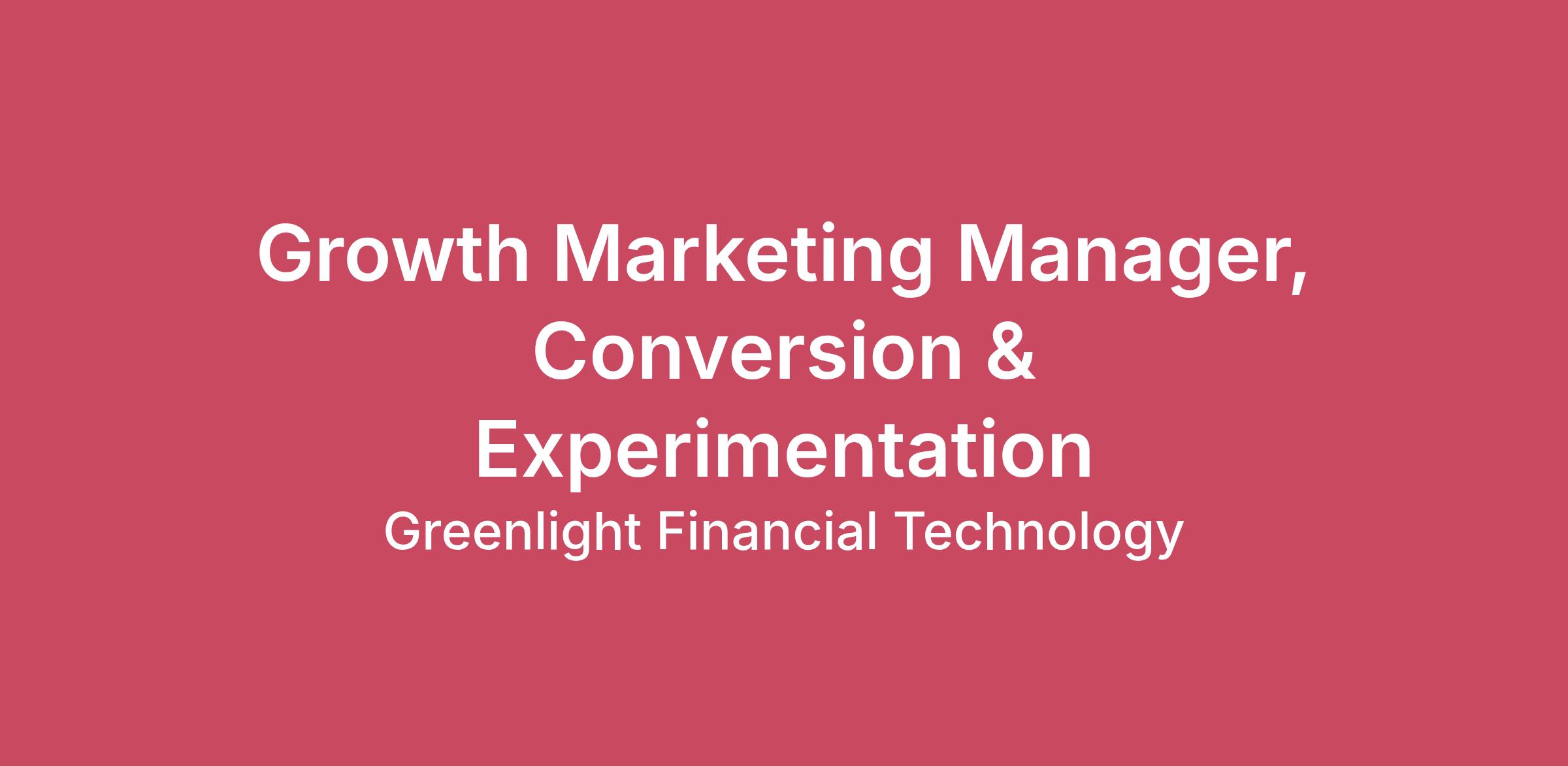 Greenlight is the leading family fintech company on a mission to help parents raise financially smart kids. We proudly serve more than 6 million parents and kids with our award-winning banking app for families. With Greenlight, parents can automate allowance, manage chores, set flexible spend controls, and invest for their family’s future. Kids and teens learn to earn, save, spend wisely, and invest. At Greenlight, we believe every child should have the opportunity to become financially healthy and happy. It’s no small task, and that’s why we leap out of bed every morning to come to work. Because creating a better, brighter future for the next generation depends on it. We’re looking for a strategic, data-driven Growth Marketing Manager, Conversion & Experimentation to optimize the full digital customer journey across our fintech ecosystem; the role will be critical to optimize from first visit and all owned platform touchpoints up until registration, purchase, onboarding, and lifecycle engagements. This role sits at the intersection of growth marketing, UX design, product merchandising, experimentation, and marketing technology infrastructure. You will drive measurable revenue growth by improving how financial products are presented, how users move through our conversion funnels, and how marketing performance is tracked and optimized. You will also own critical MarTech enablement, ensuring marketing teams have the correct tracking, tagging, QA processes, and experimentation frameworks to operate with speed and accuracy. This role reports to the Director, Growth Marketing. \nYour day-to-day: Develop and lead the full-funnel Conversion Rate Optimization (CRO) roadmap aligned to both registration and device purchase growth targets Design and execute A/B and multivariate testing strategies across marketing pages, signup flows, onboarding, and upsell experiences Build a structured experimentation backlog informed by analytics, user behavior insights, and growth hypotheses Prioritize tests using impact/effort/confidence frameworks Document experiment learnings to inform product, marketing, and lifecycle strategy Own onsite product merchandising strategy across web and Amazon storefronts Optimize how financial products and plans are presented, compared, and prioritized Test plan positioning, pricing presentation, bundling, and anchoring strategies Improve product comparison frameworks to reduce decision friction Refine value proposition messaging for different audience segments and traffic sources Collaborate with product and pricing teams on offer structure and onsite optimizations Design seamless transitions from marketing pages into registration and KYC flows Reduce friction between onsite conversion and account creation Optimize multi-step signup experiences and form completion rates Improve mobile-first conversion experiences Ensure compliance and trust signals are integrated without negatively impacting conversion Build test and learn UX experiments to optimize entire Greenlight product offering with a customer first centric lens What you’ll bring to the team: 5 to 8 years in Conversion Rate Optimization (CRO), growth marketing, product growth or performance UX roles Experience in fintech, financial services, or regulated industries preferred Proven track record increasing conversion rates through experimentation and UX optimizations. Hands-on experience managing MarTech stacks and marketing tracking implementations Experience collaborating with marketing, product, engineering, analytics and lifecycle teams. Ability to manage Shopify site, apps and funnel optimizations for ecommerce Experience overseeing Amazon storefronts and product listing page optimizations Preferred experience: Proven ownership of marketing tracking architecture to ensure accurate measurement across acquisition and conversion funnels Hands-on experience implementing and managing tagging frameworks using tools like GTM, Segment, or similar platforms Strong collaboration with analytics and engineering teams to define and maintain event tracking standards Track record of ensuring clean, reliable data collection across landing page interactions, plan selection, registration start, activation events, and downstream handoffs Led QA processes for marketing tracking implementations, validating tag performance across devices and environments Maintained clear documentation for event schemas, tracking plans, and tagging governance Supported campaign launches through tracking validation, troubleshooting, and debuggin Work perks at Greenlight: Medical, dental, vision, and HSA match Paid life insurance, AD&D, and disability benefits Traditional 401k with company match Unlimited PTO Paid company holidays and pop-up bonus holidays Professional development stipends Mental health resources 1:1 financial planners Fertility healthcare 100% paid parental and caregiving leave, plus cleaning service and meals during your leave Flexible WFH, both remote and in-office opportunities Fully stocked kitchen, catered lunches, and occasional in-office happy hours Employee resource groups \n Our stance on salaries: Greenlight provides a competitive compensation package with a market-based approach to pay and will vary depending on your location, experience and skill set. The total compensation package for this position will also include a discretionary performance bonus, equity rewards, medical benefits, 401K match, and more. Greenlight conducts continuous compensation evaluations across departments and geographies to ensure we are keeping our pay current and competitive. The estimated base pay range for this position in (NY, CA, WA): $105,000- 145,000 The estimated base pay range for this position in (CO): $105,000- 135,000 Who we are: It takes a special team to aim for a never-been-done-before mission like ours. We’re looking for people who love working together because they know it makes us stronger, people who look to others and ask