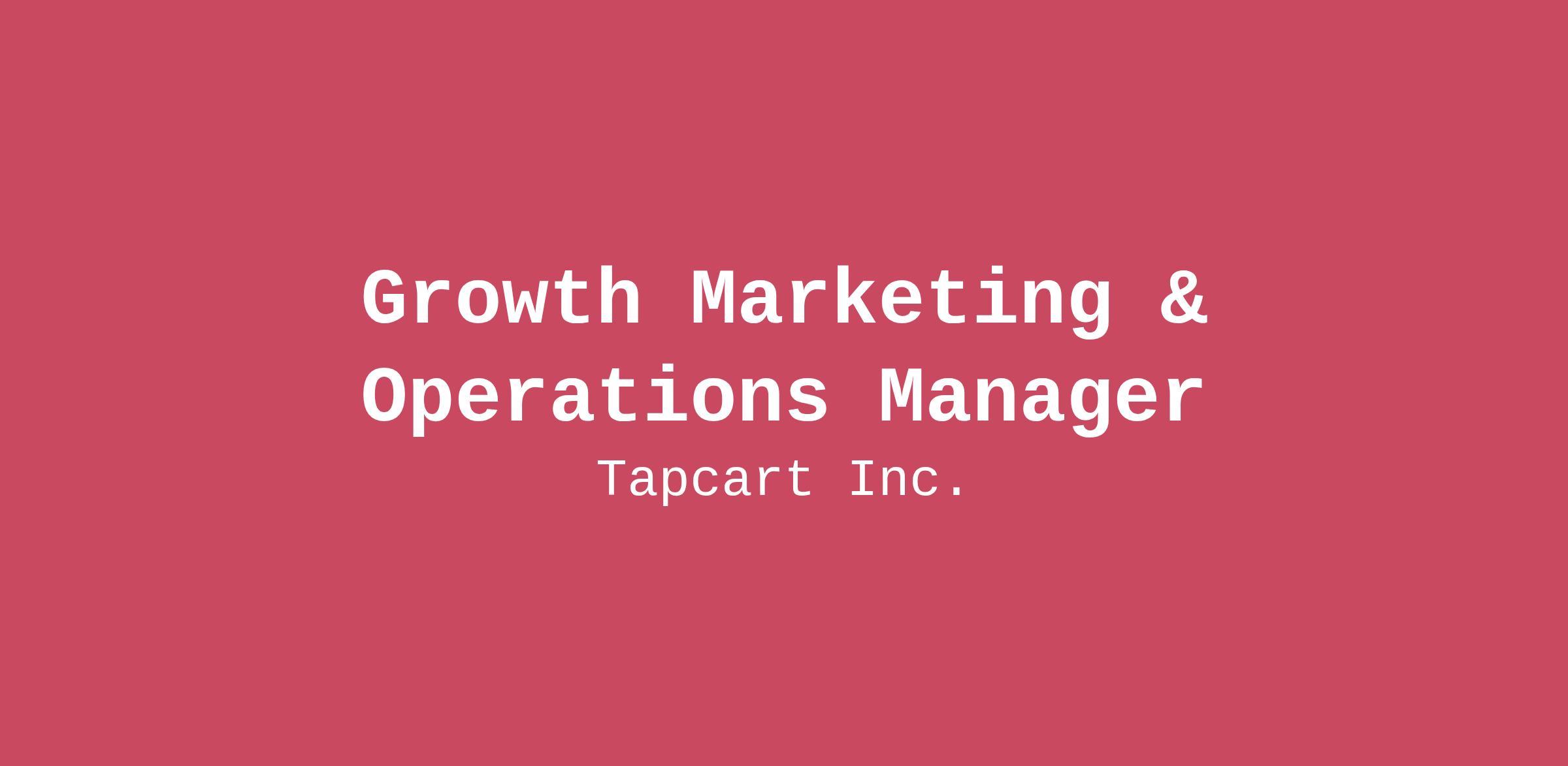Tapcart is the leading mobile app platform for the world’s fastest-growing Shopify brands. We help marketers and eCommerce teams strengthen their brands and create differentiated customer experiences through a direct mobile channel.Our platform powers mobile shopping for over 50 million consumers and processes more than $8 billion in revenue annually. Brands like Béis, Grove Collaborative, and Ruggable trust Tapcart to turn mobile traffic into high-retention, high-growth relationships — with mobile apps launched in hours, not months.THE ROLEWe’re looking for a Growth Marketing & Operations Manager to join our growing marketing team to play a critical role in propelling Tapcart into the next phase of the business.The Marketing team sits at the center of Tapcart’s GTM motion, playing a critical role in pipeline growth necessary to maintain and expand our sales operations. Tapcart has lofty goals in 2026 - the Growth Marketing & Operations Manager will be essential in feeding our pipeline growth through creative and strategic initiatives, while also maintaining reporting/operational hygiene that aids our GTM team in scaling effectively.The candidate filling this role will have a unique combination of skills - creative problem solving, strategic thinking, and operational efficiency to balance the growth marketing and general GTM team needs. The partnership between this candidate and our Rev Ops team is essential, ensuring tracking, attribution, and Salesforce hygiene are maintained at a high level.HOW YOU WILL MAKE AN IMPACTBe a catalyst for pipeline growth: You’ll take ownership of the growing pipeline and help define how we scale demand at our next stage of growth.Build a culture of creative experimentation: You’ll lead ongoing testing across channels, messages, and motions, turning curiosity into insight and insight into momentum.Transform experiments into scalable growth engines: As you uncover what works, you’ll help turn early wins into durable, repeatable programs that can scale with the business.Strengthen the connection between Marketing, Sales, and Rev Ops: You’ll ensure marketing efforts translate into high-quality, measurable pipeline by partnering closely with Sales and Rev Ops.Lay the foundation for operational excellence: You’ll help bring structure, clarity, and consistency to our growth motion, so we have systems that can scale as we grow.WHAT SKILLS YOU’LL NEED (5-7 years of experience)Hands-on growth experience: You’ve driven demand or pipeline growth in a B2B SaaS environment and are comfortable owning results in a fast-moving, resource-conscious team.Experimentation mindset: You know how to design tests across multiple demand channels (paid, outbound, partnerships, events, etc.). You can evaluate outcomes, and iterate quickly, balancing creativity with strategy and discipline.Lifecycle marketing experience: You’ve built or managed lifecycle programs that nurture prospects and customers across stages—using segmentation, personalization, and timely messaging to drive engagement and pipeline impact.Strong analytical instincts: You’re fluent in funnel metrics, pipeline reporting, and performance analysis, and you use data to guide decisions.Marketing & revenue operations fluency: Experience working with CRM and marketing automation tools (Salesforce, Hubspot), with a strong appreciation for clean data, attribution, and process.Pipeline-savvy perspective: You understand how marketing influences revenue at a company like Tapcart, from first touch through opportunity creation.Operational builder mentality: You enjoy creating structure where it’s needed, improving processes, and setting up systems that scale.Cross-functional collaborator: You work naturally with Rev Ops, Sales, Product, Marketing, and Leadership to align on goals and execution.AI-powered operational leverage: You leverage AI tools to accelerate growth and execution—using them to speed up experimentation, generate and refine messaging, analyze performance data, automate workflows, and unlock insights that would be hard to surface manually.Comfort with ambiguity: You’re energized by building in an environment where priorities evolve and results and initiative are rewarded.Clear, confident communicator: You can share results, insights, and recommendations in a way that builds trust and alignment across teams.BONUS IF YOU HAVE:Experience working in the Shopify ecosystemAgency experience as a media planner or strategistOwned Product-led Growth initiativesSALARY RANGE: $105,000-$120,000This position is not eligible for visa transfer or sponsorship.This position is remote eligible in the following states: AL, AZ, CA, CO, FL, GA, IL, MA, ME, MI, NV, NJ, NY, NC, OH, OR, PA, TN, TX, UT, VA, WATAPCART PERKS AND BENEFITS: Financial Wellness401(k) plan and equity grants for all full-time employees — because we grow togetherCompetitive compensation with room to grow Health & WellbeingAffordable, high-quality medical, dental, and vision coverageMental health support via Headspace and Talkspace, ensuring your whole self is supported Flexibility & Time OffFlexible PTO policy — take the time you need to rest and recharge11 paid company holidaysWork remotely Work-Life Balance with a Tapcart TwistOne-time home office setup stipend to get you startedRecurring merchant shopping stipend so you can experience the magic of Tapcart like our customers doWHY JOIN TAPCART?We’re a Santa Monica-based tech company with the energy of a startup and the momentum of a market leader . At Tapcart, we believe building great products starts with building an environment where passionate people can thrive.Since our $50M Series B in 2021, we’ve continued scaling our platform and our community of merchants. Backed by world-class investors and trusted by leading eCommerce brands, we’re on a mission to redefine mobile shopping — and we’re just getting started.Check out what our customers are saying.Learn more