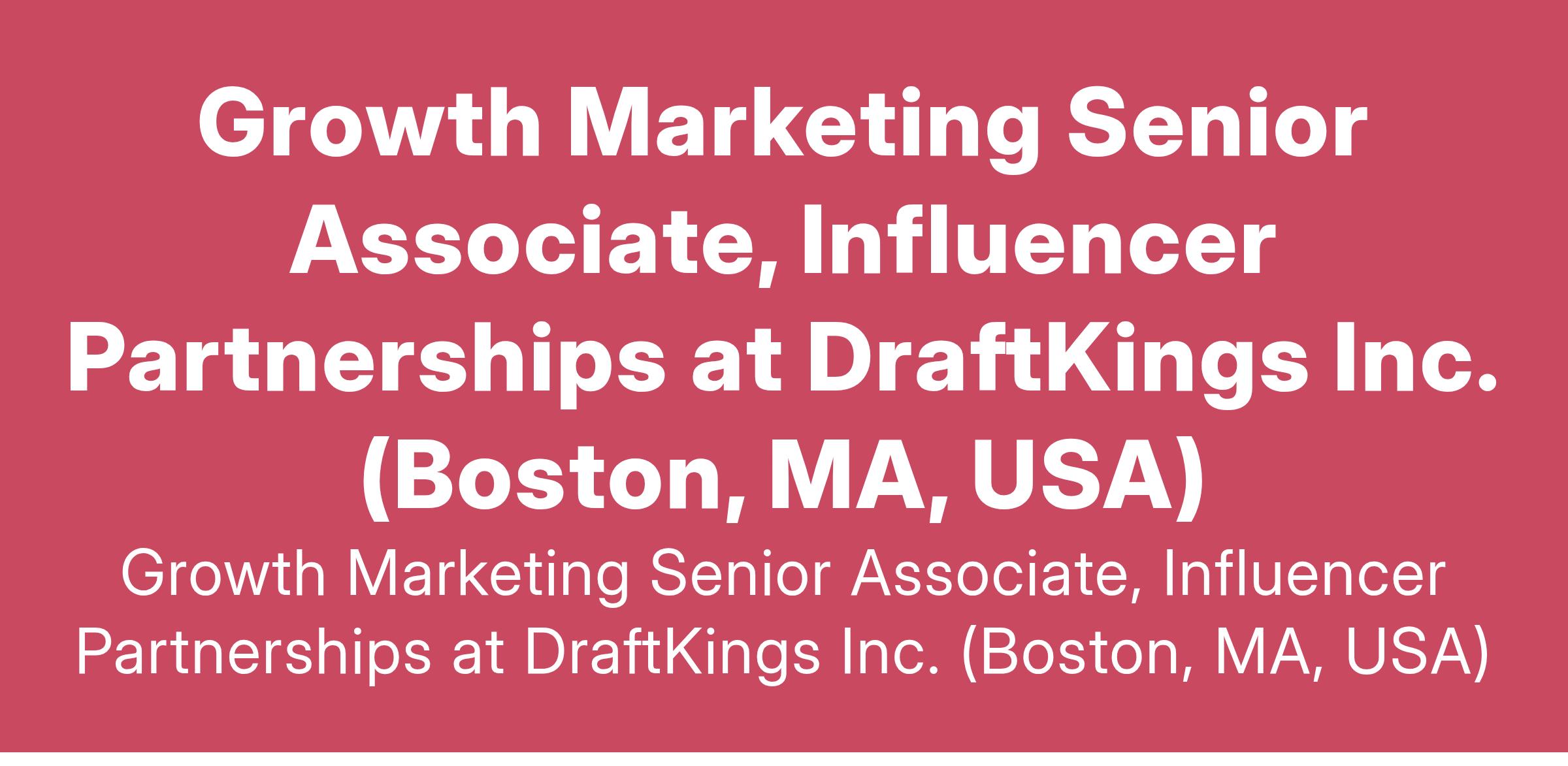 Growth Marketing Senior Associate, Influencer Partnerships at DraftKings Inc. (Boston, MA, USA)