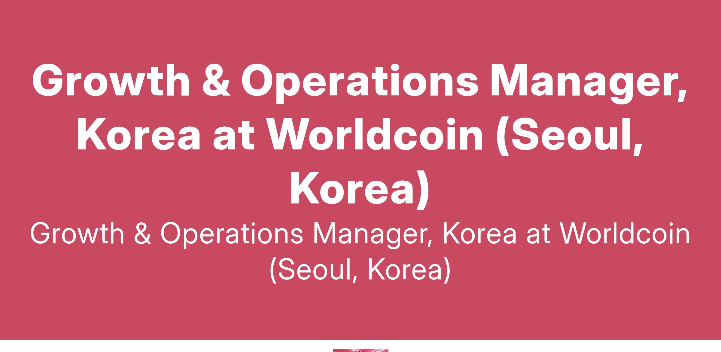 Growth & Operations Manager, Korea at Worldcoin (Seoul, Korea)