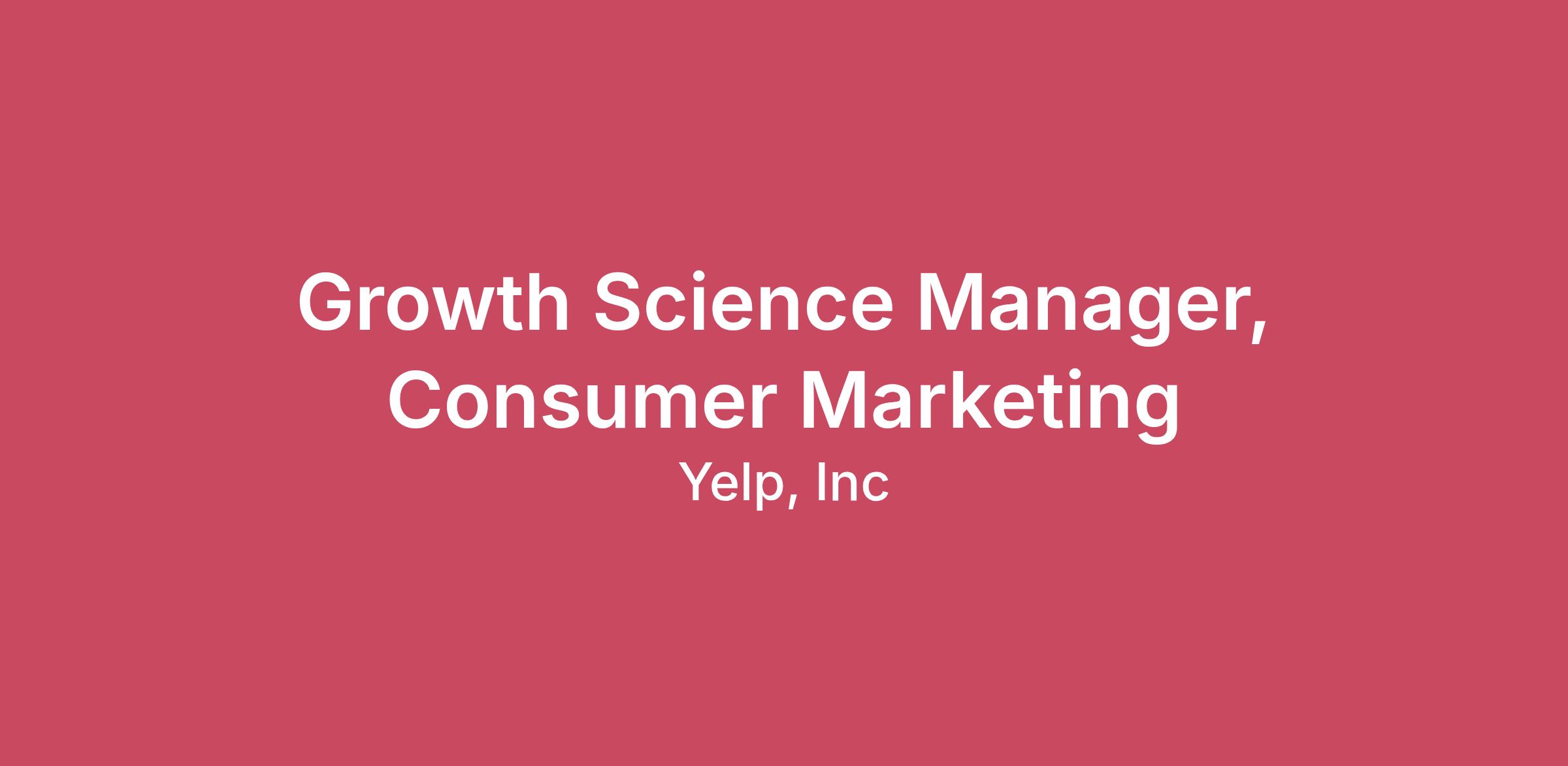 Summary Yelp’s mission is to connect people with great local businesses. As a trusted source of information on local business, millions of people turn to Yelp every day to make decisions about where to spend their money - from where to eat, shop, or stay, to which home or local service provider to use, and beyond. As part of the Consumer Marketing team, the Growth Science Manager will harness rigorous analytics, strategic partnership, and operational execution to fuel Yelp’s next phase of user growth. This high-impact role combines deep channel and user analysis, OKR ownership, funnel optimization, and creative data mining of Yelp’s vast data sets to accelerate scalable, predictable growth. Our team is passionate about data, experimentation, and the power of new technology, including AI, to drive innovation. We are especially interested in candidates who bring direct experience in applying AI to uncover deep consumer insights. We’d love to have you apply, even if you don’t feel you meet every single requirement in this posting. At Yelp, we’re looking for great people, not just those who simply check off all the boxes. This is a full-time remote role based in the United States. What you'll do: OKR Reporting & Measurement: Own the analytics frameworks for investigating performance and help ensure we are on track to Consumer Marketing OKRs. Ensure measurement is actionable, accurate, and supports evolving business priorities. User & Channel Insights: Analyze user journeys and channel performance to identify opportunities and friction points across the marketing funnel. Marketing Measurement & Funnel Optimization: Develop dashboards, measurement models, and experiment infrastructure for actionable insights throughout the consumer lifecycle. Advanced Data Mining & Marketplace Exploration: Dive into Yelp’s rich datasets, including trending restaurants, services, foods, and user-generated content, to uncover actionable themes that inform consumer strategy and marketing. Leverage Emerging AI & Automation: Use cutting-edge AI and machine learning tools to unlock insights, automate repetitive analyses, and accelerate the discovery of new growth levers. Proactively evaluate and integrate new AI-powered analytics solutions. Experimentation & Strategic Recommendations: Design, run, and interpret A/B and multivariate experiments. Translate findings into actionable recommendations for marketing, product, and leadership teams. Cross-Functional Partnership: Collaborate with Marketing, Biz Ops, Product, Engineering, Data & Analytics and Strategy teams to turn analytical insights into business action. Facilitate data-driven decision-making at all levels. Regularly present to both technical and non-technical stakeholders at all levels of the org. Develop and Scale Analytical Best Practices: Champion best practices in analytics infrastructure, fostering a culture of experimentation and continuous learning across the growth team. Empower fellow marketers to extract their own standardized insights to embed a data driven culture across the team and create bandwidth for high value analytics and insights. Problem-Solving & Strategic Solutioning: Deconstruct complex business challenges into actionable analytical problems, developing and implementing data-driven solutions that directly fuel user growth. What it takes to succeed: 5+ years of experience in high-impact analytics, marketing analytics, or business intelligence roles, ideally within B2C or marketplace environments. Deep expertise in marketing measurement, user funnel analytics, and advanced data analysis (strong SQL and Excel required; familiarity with BI tools such as Tableau, Looker etc. and proficiency in Python a plus). Proven experience integrating AI/ML tools into data analysis, reporting, or marketing automation workflows. Strong business and product intuition, and the ability to synthesize metrics and trends into clear recommendations. Experience with experiment design, A/B testing, and rapid test iteration. Collaborative, resourceful, and solutions-oriented approach with a builder’s mindset. Excellent communicator, verbal and written. Skilled at translating complex analyses into actionable insights for all audiences. Intellectual curiosity and an eagerness to stay ahead on AI, analytics trends, and evolving marketing technology. Adept Problem Solver: Proven ability to break down ambiguous and complex problems into manageable components, identifying root causes and developing innovative, data-driven solutions. What you'll get: Effective your first day: Full medical, vision, and dental 15 days PTO (accrual begins on date of hire and increases with 2+ years of tenure thereafter), 12 paid holidays, plus one floating holiday Up to 14 weeks of parental leave Monthly wellness subsidy Work from home reimbursement Flexible spending account 401(k) retirement savings plan Employee stock purchase plan Compensation range for this position is $106,000.00 - $198,000.00 annually. You may also be offered a bonus and benefits. Closing At Yelp, we believe that diversity is an expression of all the unique characteristics that make us human: race, age, sexual orientation, gender identity, religion, disability, and education — and those are just a few. We recognize that diverse backgrounds and perspectives strengthen our teams and our product. The foundation of our diversity efforts are closely tied to our core values, which include “Playing Well With Others” and “Authenticity.” We’re proud to be an equal opportunity employer and consider qualified applicants without regard to race, color, religion, sex, national origin, ancestry, age, genetic information, sexual orientation, gender identity, marital or family status, veteran status, medical condition or disability. Actual salary offered may vary based on multiple factors, including but not limited to, an individual's location and experience. We will consider for employment qualified candi