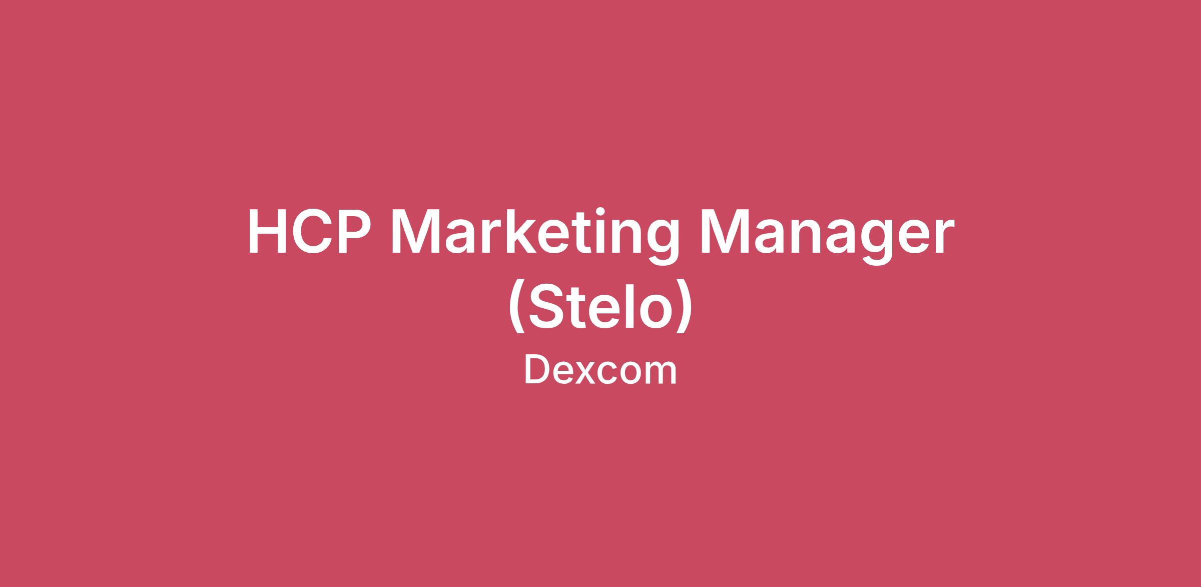 The Company Dexcom Corporation (NASDAQ DXCM) is a pioneer and global leader in continuous glucose monitoring (CGM). Dexcom began as a small company with a big dream: To forever change how diabetes is managed. To unlock information and insights that drive better health outcomes. Here we are 25 years later, having pioneered an industry. And we're just getting started. We are broadening our vision beyond diabetes to empower people to take control of health. That means personalized, actionable insights aimed at solving important health challenges. To continue what we've started: Improving human health.  We are driven by thousands of ambitious, passionate people worldwide who are willing to fight like warriors to earn the trust of our customers by listening, serving with integrity, thinking big, and being dependable. We've already changed millions of lives and we're ready to change millions more. Our future ambition is to become a leading consumer health technology company while continuing to develop solutions for serious health conditions. We'll get there by constantly reinventing unique biosensing-technology experiences. Though we've come a long way from our small company days, our dreams are bigger than ever. The opportunity to improve health on a global scale stands before us.Meet the team:Join a dynamic HCP marketing team that is focused on expanding access, simplifying insights and empowering more providers to deliver better care. We are focused on delivering innovative glucose sensing that helps simplify care and drive better patient outcomes.As we grow the Stelo brand, you will play a key role in shaping how we connect with HCPs through bold strategy, innovative campaigns and relentless focus on impact. If you are excited about a fast-paced, forward-thinking environment, come join our team!Where you come in:You will:Support development and execution of the Stelo HCP marketing strategy, ensuring alignment to brand positioning, portfolio priorities, and businessTranslate clinical and product value into clear, compelling, and compliant HCP messaging across channelsPlan and execute HCP-focused paid media campaigns (programmatic, endemic, paid social, paid search, etc) in partnership with internal media lead and agency teamsEnsure consistent brand and message delivery across all HCP touchpoints to deliver personalized, compelling experience that creates actionDevelop and maintain HCP sales enablement tools, including visual aids, brochures, presentations, digital assets, and field resourcesSupport Stelo HCP website, email and paid media content development for Stelo, including ongoing optimization of provider pages, educational content, and conversion pathwaysDevelop and maintain HCP sales enablement tools, including visual aids, brochures, presentations, digital assets, and field resourcesDrive HCP lead generation through digital campaigns, email journeys, website forms, events, and affiliate programsServe as a primary marketing partner to Medical, Legal, and Regulatory teams to ensure timely, compliant development and approval of HCP assetsWhat makes you successful:You will bring:Bachelor’s degree in Marketing, Business, or related field5+ years of experience in healthcare, medical device, pharmaceutical, or regulated marketingExperience developing HCP marketing strategies across paid media, digital, and sales enablementStrong working knowledge of MLR processes and regulated promotional environmentsProven ability to manage multiple projects and stakeholders simultaneouslyExcellent communication, collaboration, and execution skillsWhat you’ll get: A front row seat to life changing CGM technology. Learn about our brave #dexcomwarriors community.A full and comprehensive benefits program.Growth opportunities on a global scale.Access to career development through in-house learning programs and/or qualified tuition reimbursement.An exciting and innovative, industry-leading organization committed to our employees, customers, and the communities we serve.Travel Required:15-25%Experience and Education Requirements: Typically requires a Bachelor’s degree with 8-12 years of industry experienceRemote Workplace: Your location will be a home office; you are not required to live within commuting distance of your assigned Dexcom site (typically 75 miles/120km). If you reside within commuting distance of a Dexcom site (typically 75 miles/120km) a hybrid working environment may be available. Ask about our Flex workplace option.Please note: The information contained herein is not intended to be an all-inclusive list of the duties and responsibilities of the job, nor are they intended to be an all-inclusive list of the skills and abilities required to do the job. Management may, at its discretion, assign or reassign duties and responsibilities to this job at any time. The duties and responsibilities in this job description may be subject to change at any time due to reasonable accommodation or other reasons. Reasonable accommodations may be made to enable individuals with disabilities to perform essential functions. An Equal Opportunity Employer. All qualified applicants will receive consideration for employment without regard to race, color, religion, sex, sexual orientation, gender identity, age, national origin, or protected veteran status and will not be discriminated against on the basis of disability. Dexcom’s AAP may be viewed upon request by contacting Talent Acquisition at talentacquisition@dexcom.com. If you are an individual with a disability and would like to request a reasonable accommodation as part of the employment selection process, please contact Dexcom Talent Acquisition at talentacquisition@dexcom.com. Meritain, an Aetna Company, creates and publishes the Machine-Readable Files on behalf of Dexcom. To link to the Machine-Readable Files, please click on the URL provided:  https://health1.meritain.com/app/public/#/one/insurerCode=MERITAIN_I&brandCode=MERITAINOVER/machine-reada