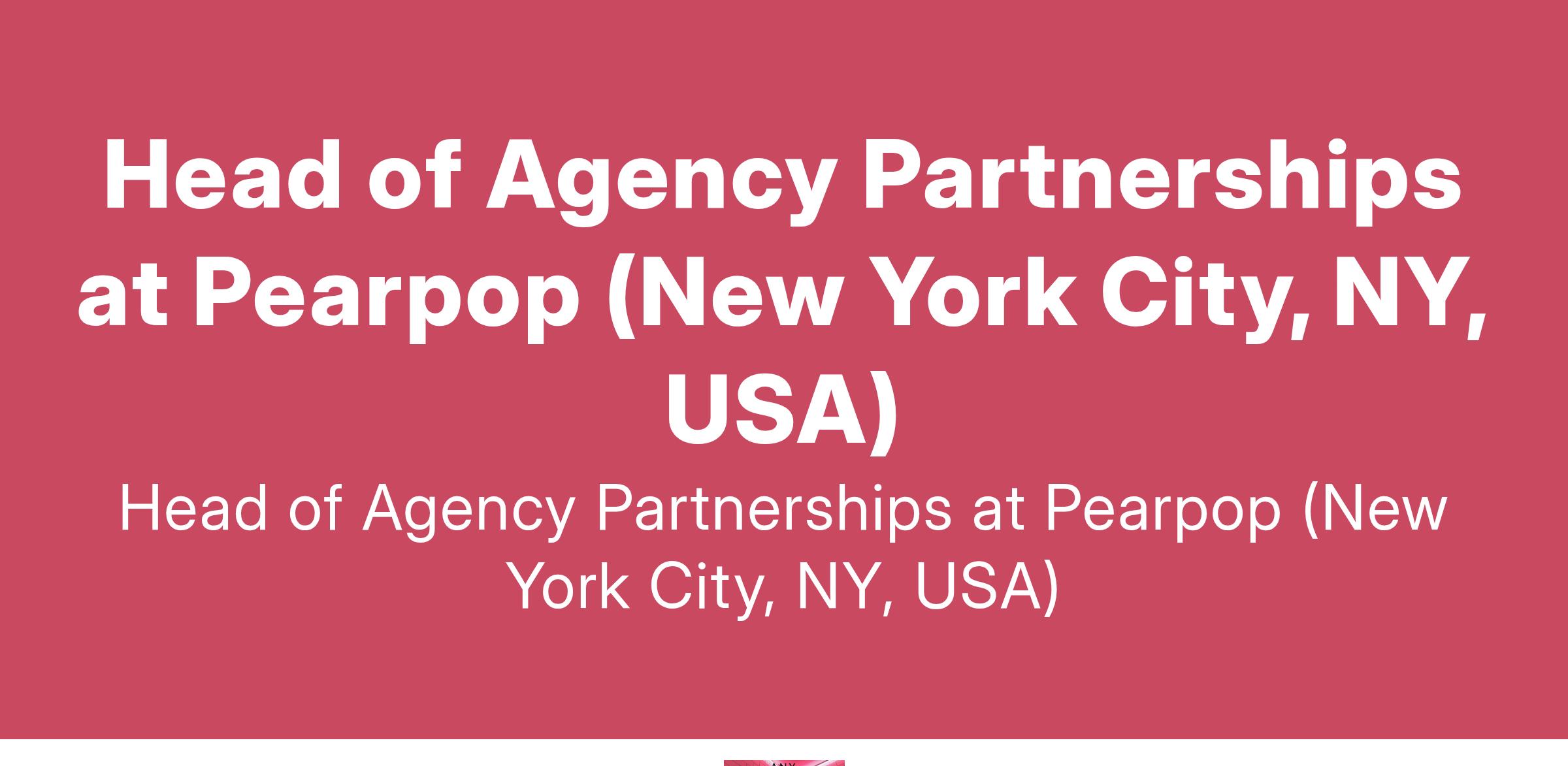 Head of Agency Partnerships at Pearpop (New York City, NY, USA)