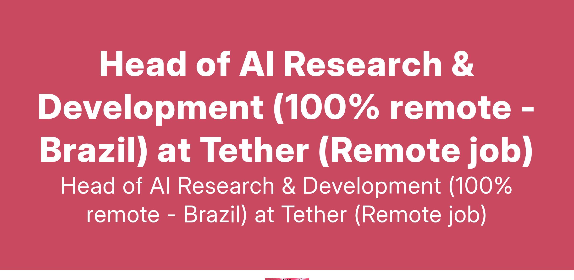 Head of AI Research & Development (100% remote - Brazil) at Tether (Remote job)