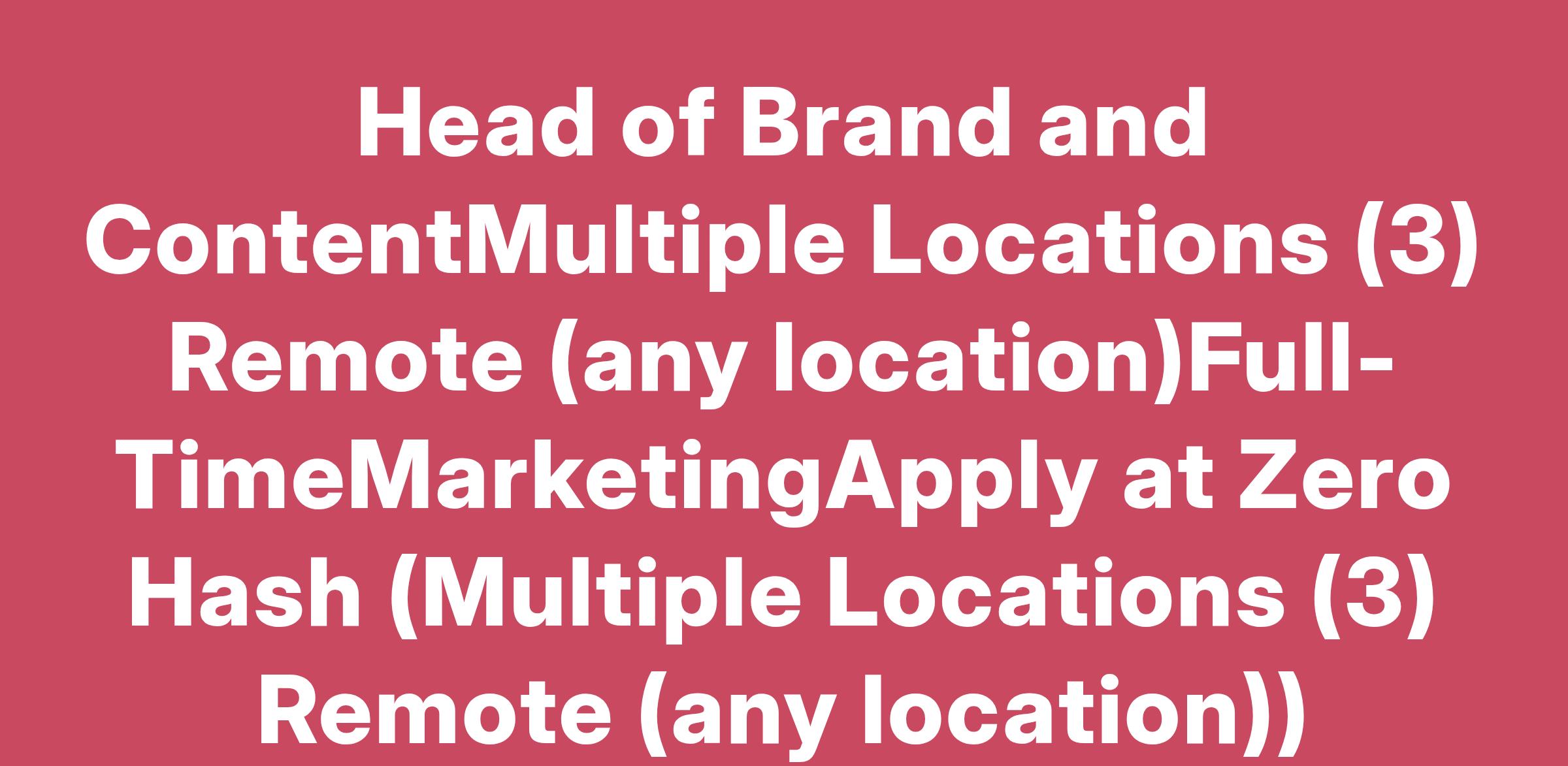 Head of Brand and ContentMultiple Locations (3) Remote (any location)Full-TimeMarketingApply at Zero Hash (Multiple Locations (3) Remote (any location))