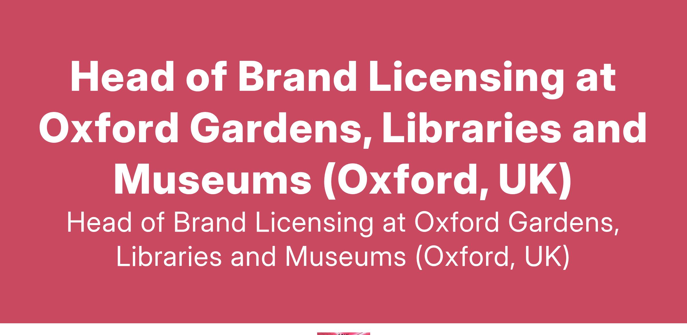 Head of Brand Licensing at Oxford Gardens, Libraries and Museums (Oxford, UK)