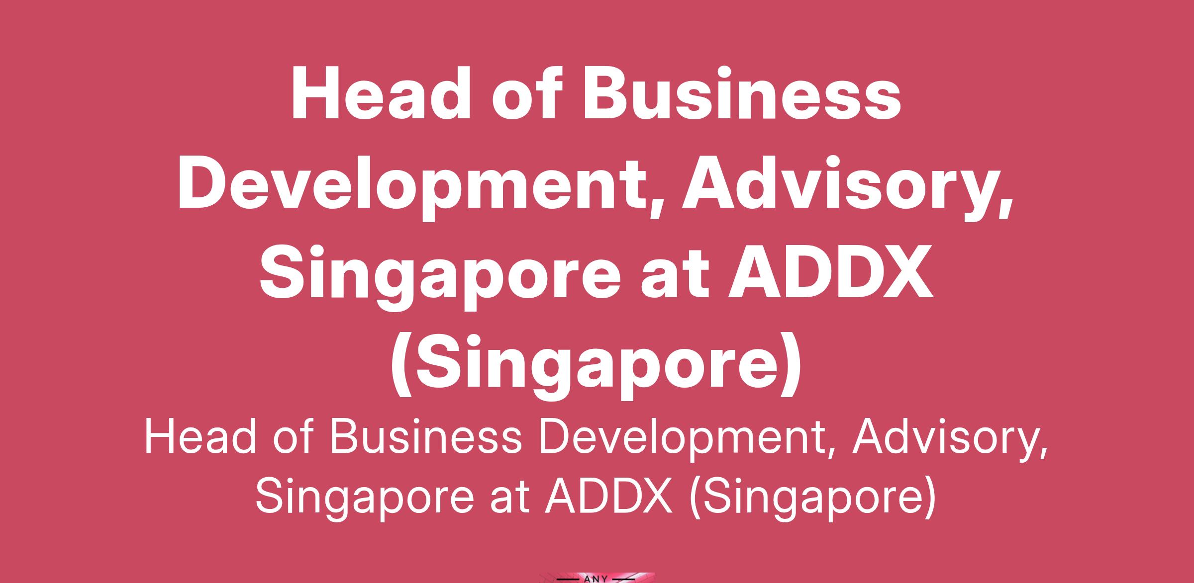 Head of Business Development, Advisory, Singapore at ADDX (Singapore)