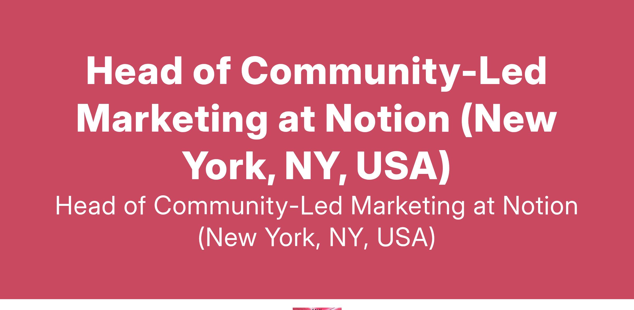 Head of Community-Led Marketing at Notion (New York, NY, USA)