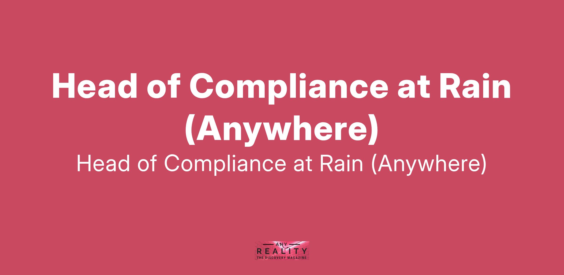 Head of Compliance at Rain (Anywhere)