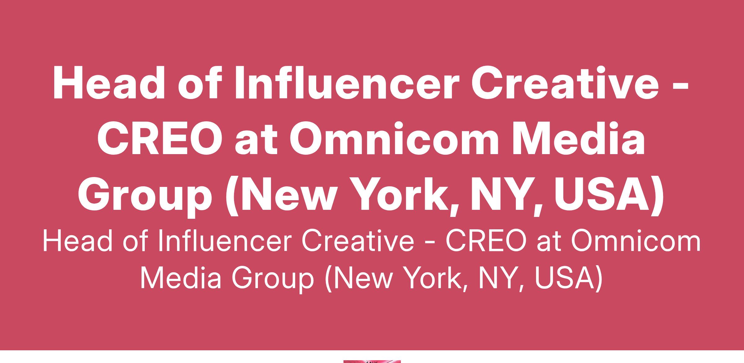 Head of Influencer Creative - CREO at Omnicom Media Group (New York, NY, USA)