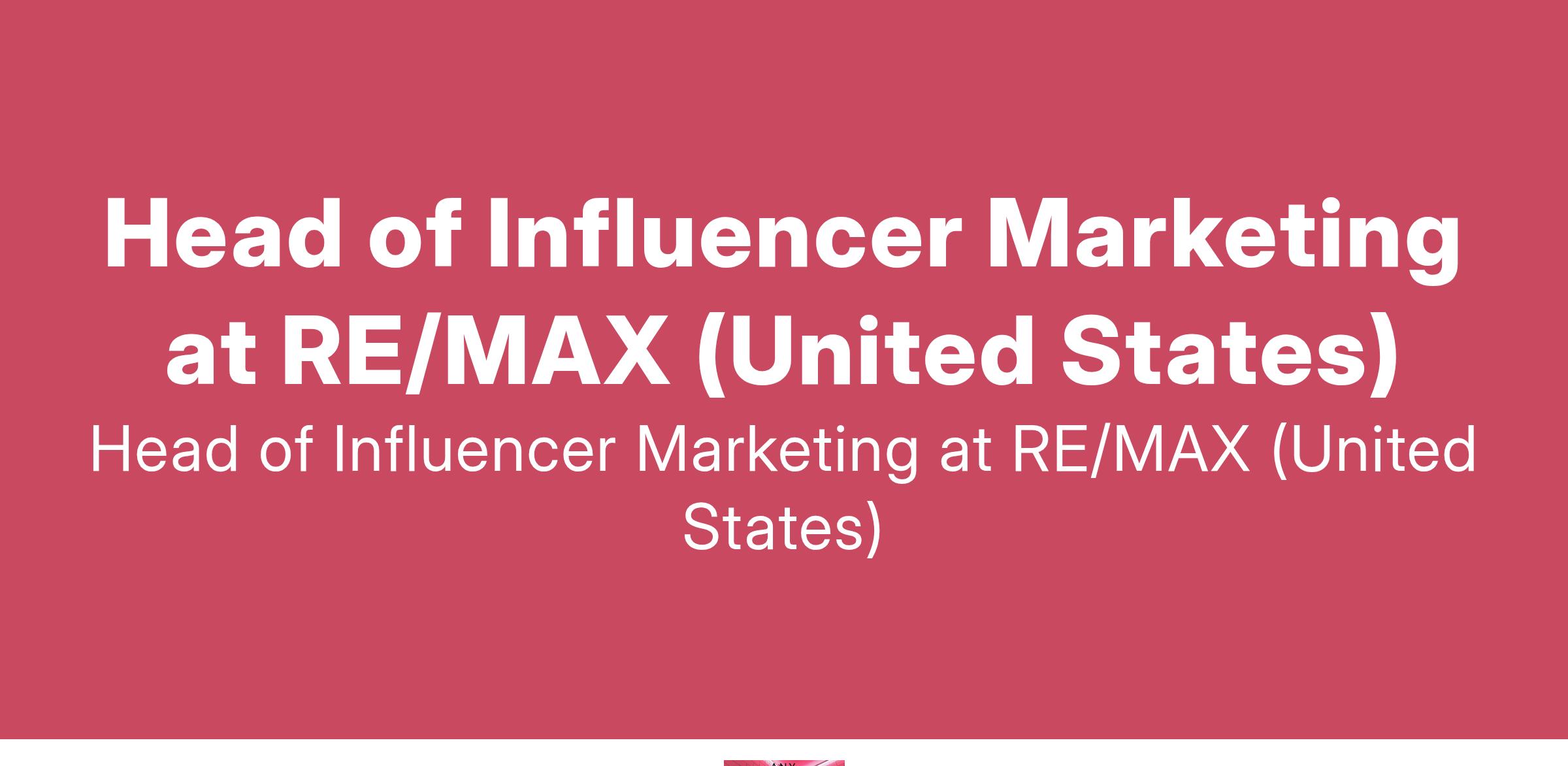 Head of Influencer Marketing at RE/MAX (United States)