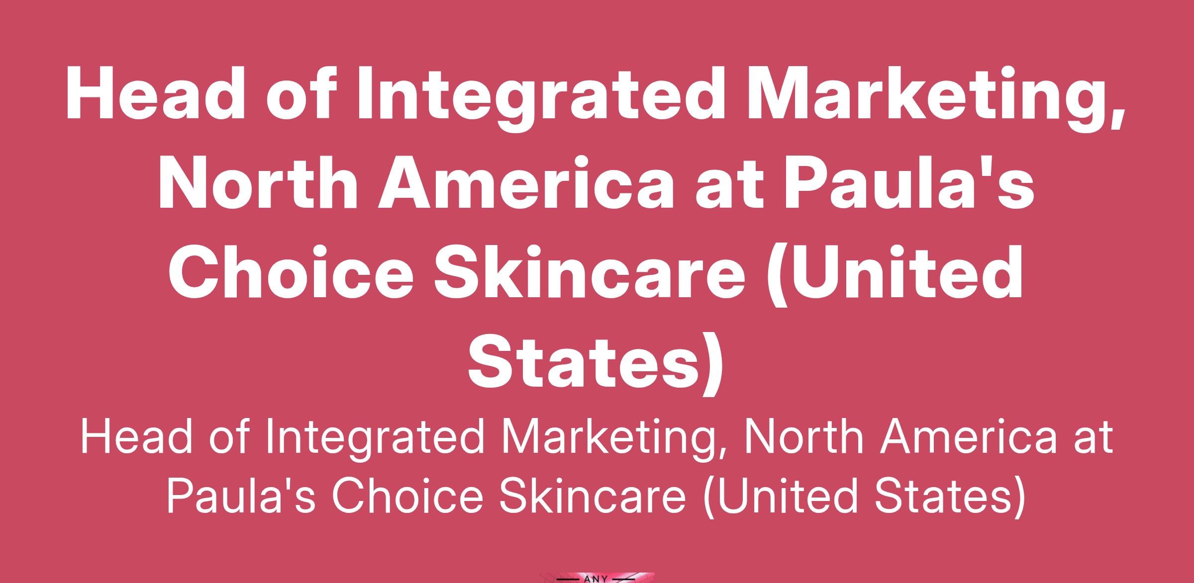 Head of Integrated Marketing, North America at Paula's Choice Skincare (United States)