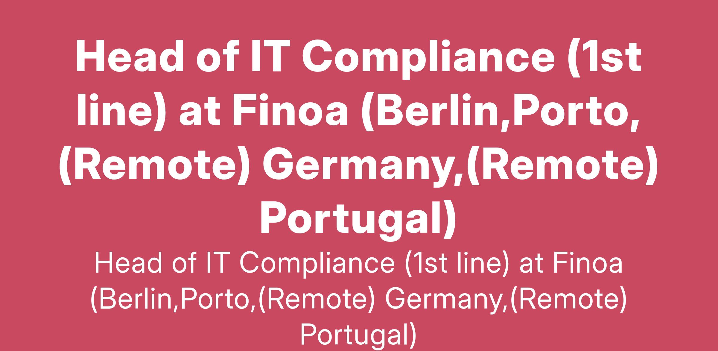Head of IT Compliance (1st line) at Finoa (Berlin,Porto,(Remote) Germany,(Remote) Portugal)