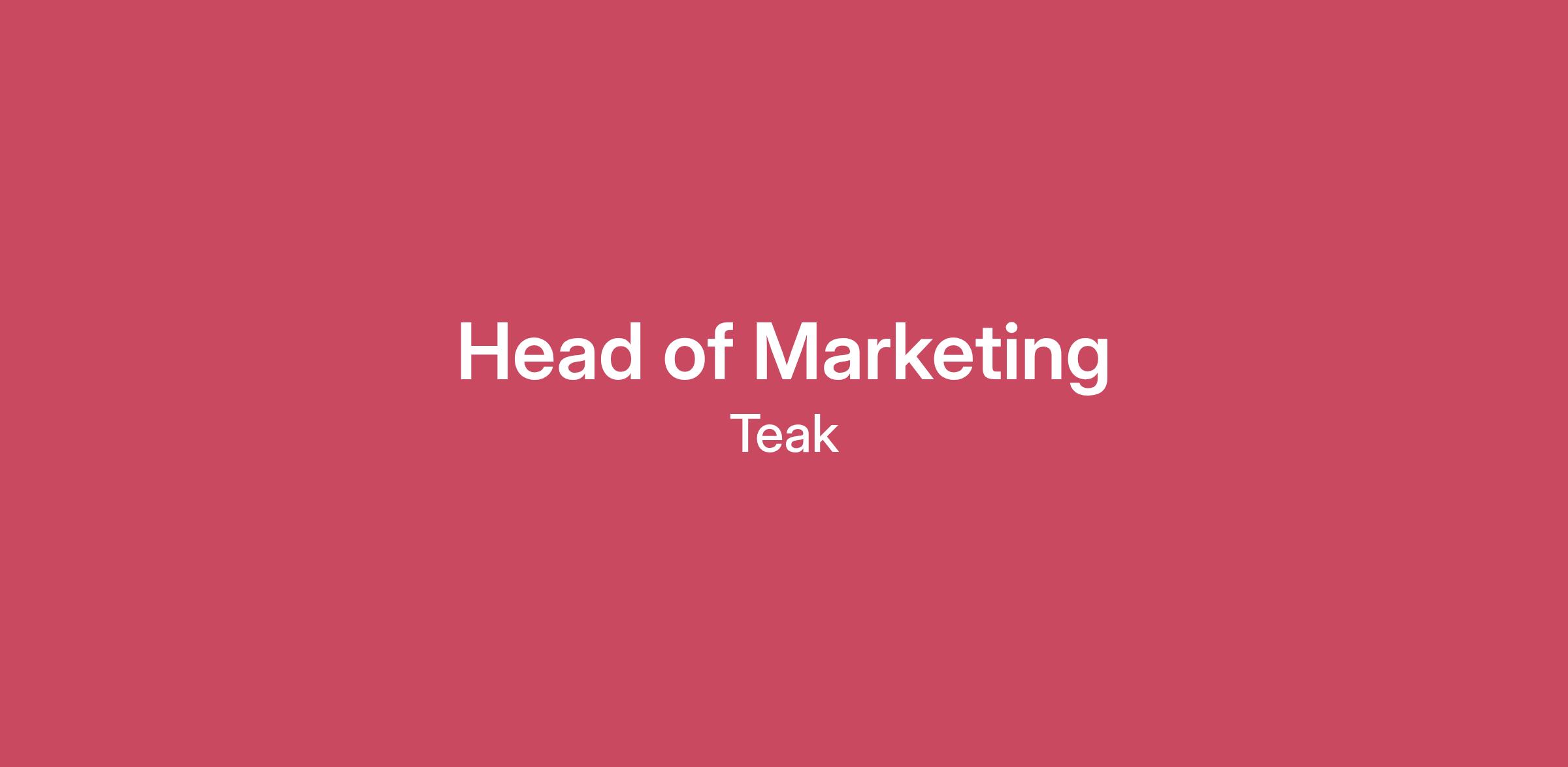About TeakTeak is building better experiences for people attending live events and booking travel. Our easy-to-embed, full-service solutions let companies offer consumers flexibility and refundability right at the point of purchase. We have served over 12 million consumers and made over $1B in experiences refundable. Our business is growing quickly and is profitable.We're a fully remote, fast-moving, high-impact team that thrives on solving hard problems. Every role here is mission-critical, and every person has the opportunity to shape Teak's future.The RoleWe're hiring a Head of Marketing to build a strategic marketing function focused on driving revenue. This player-coach role involves both hands-on execution and team-building as you establish processes and set the department's direction. We're looking for a creative thinker to explore innovative ways to increase pipeline and revenue while maximizing sales resources. You’ll support our teams, drive client activation, and collaborate closely with our Founder CEO to ensure everything aligns with our brand and positioning.You'll work alongside Sales, Partnerships, Customer Success, and Solutions Delivery to ensure marketing efforts are efficient and aligned with revenue goals. Reporting to our COO, you'll design programs to fill the pipeline, accelerate deals, and support customer expansion. If you have experience tackling similar challenges and are ready to take ownership of the function, this is a great opportunity to make a meaningful impact.What You'll DoLead high-impact marketing programs while hiring, developing the team, and creating scalable processes for consistent excellence. Make strategic decisions on marketing resource allocation for customer acquisition or expansion. Design and execute scalable customer marketing programs to drive revenue and support Customer Success. Develop innovative demand generation approaches that build pipeline within complex sales cycles. Strategically build the marketing team, determining roles and structure as the business scales. Maximize ROI from events and conferences while creating repeatable programs to expand reach. Enable the sales team with valuable assets and positioning to close complex B2B deals. Drive product marketing and go-to-market efforts, translating technical capabilities into appealing narratives. Collaborate with the CEO to align marketing with brand voice and ensure high-quality execution. Optimize the digital presence by improving the website, email campaigns, and B2B social programs. Partner with revenue leadership to align strategies and create shared metrics and feedback loops. Translate business strategy into actionable marketing plans with clear KPIs and accountability. Lead competitive intelligence and market analysis initiatives, establishing systems to track competitor movements, identify market opportunities, and inform strategic positioning decisions across the organization.Required ExperienceThe ideal candidate excels in strategic thinking and execution, effectively prioritizing resources and driving revenue through targeted marketing programs. With a keen eye for design, you collaborate with leadership to deliver high-quality initiatives aligned with business goals. You facilitate communication, hold teams accountable, and adapt quickly to support sales while creatively addressing challenges.10+ years in B2B marketing, with at least 3-5 years leading marketing organizationsTrack record of building marketing teams from early stage to scaled functionsExperience in making strategic resource allocation decisions and clearly articulating trade-offsPrior success in building customer marketing or expansion programs that drive revenue from existing customersExperience developing creative approaches to demand generation in concentrated markets or complex enterprise B2B environmentsProven success in developing and launching B2B websites that drive measurable pipeline and conversionDeep experience with B2B digital marketing, including email campaigns, marketing automation, and social media programsPrior experience bringing SaaS products and complex B2B services to market, from positioning through launch and growthDeep experience in enterprise B2B, ideally in SaaS, fintech, insurtech, or complex B2B servicesProven ability to drive measurable pipeline and revenue contribution in resource-conscious environmentsPrior success working closely with sales organizations that handle full-cycle sales Experience maximizing ROI from events, conferences, and field marketing programsExperience working with Customer Success teams to drive expansion and adoptionNot Required But Valued:Experience in events, sports, travel, insurance, or payments industriesPrior experience in scaling mid-stage (Series B/C) companies through growth inflection pointsBackground working in product-led or solutions-led organizationsExperience with platform business models and B2B2C go-to-market strategiesPrior success with ABM programs in concentrated marketsWhy Join Teak?Fully Remote Working EnvironmentCompetitive Salary and Equity OpportunitiesUnlimited Paid Time-offMedical, Dental, and Vision BenefitsAnnual Bonus Program401k Matching$100/month for Event Ticket PurchaseCompany-Sponsored Events