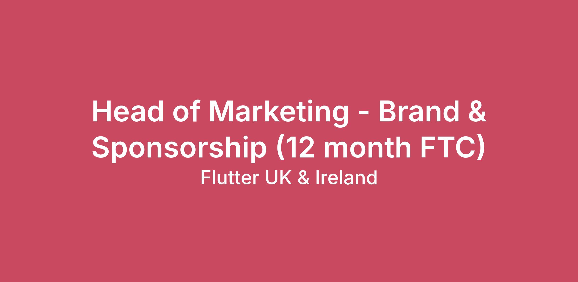 Head of Marketing - Brand & Sponsorship (12 month FTC)