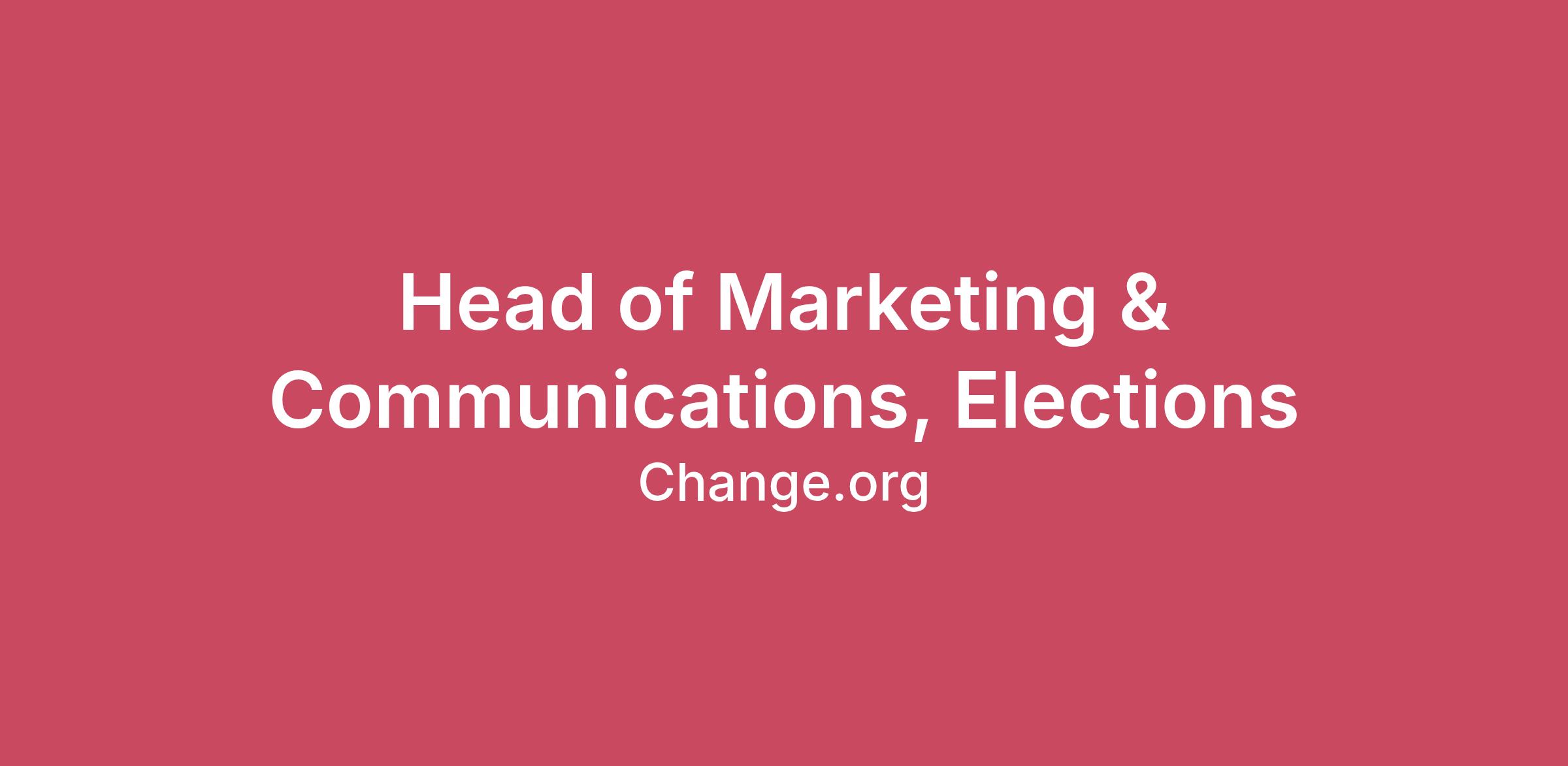 Change.org is searching for a Head of Marketing & Communications, Elections to own all marketing and audience distribution efforts for Elections. You will report to our VP Product, Impact. As a key member of our Elections team, you'll establish marketing strategies to build out our Elections brand (currently found at change.vote), and drive voter engagement and education, starting with the 2026 midterm elections.We’re a social impact business (a public benefit company), and the world's largest social change platform with 100 million users, 40,000+ campaigns launched on the site every month, and a 100% user-generated revenue model. Our users win campaigns for change once every hour. We’re working for a world where no one is powerless, and where creating change is a part of everyday life. We’re just getting started and hope you’ll join us!From mobilizing over 5 million people to investigate the fires in the Amazon, to mobilizing nearly 3 million against war and famine in Yemen, to large-scale mobilizations for the people of Iran and against the war in Ukraine, and calling for Racial Justice in the US, many movements were born on Change.org. Dozens of local, national, and international victories are happening every day thanks to the strength of our members who are changing the lives of people around the world. We want to help them go even further and we need your help!Key Outcomes:Strategy and LeadershipSet the overall marketing and audience distribution strategy for Elections, balancing near-term performance goals with long-term brand building.Serve as a strategic partner to the GM of Elections and the broader Elections leadership team.Execution and Budget OwnershipDrive voters in target cities to view their ballots through a balanced mix of paid, organic, and partnership channels.Reduce customer acquisition cost (CAC) through performance optimization and close collaboration with Growth Product.Own and optimize a paid media budget, including performance tracking, optimization, reporting, and continuous learning.Manage an external ad agency, providing clear direction on creative, targeting, testing, and execution across channels such as Meta, YouTube, Reddit, and others.Partner closely with FP&A to ensure responsible spend, accurate forecasting, and clear impact measurement.Brand and NarrativeDefine and execute a clear brand vision and strategy for Elections, building momentum toward the 2028 presidential cycle and beyond.Lead the development and stewardship of the Elections brand, partnering with Research and Content teams to ensure voice, tone, and narrative reflect trust, clarity, and nonpartisan integrity.Translate complex civic information into clear, compelling messaging that resonates with diverse voter audiences.Team LeadershipPlayer/Coach: Manage a small team of ICs (with plans to grow after 2026), filling in on execution where needed.Create clarity, focus, and momentum during high-intensity election cycles and provide stability during quieter post-election periods.Help design and scale the future Elections marketing organization as scope and impact expand.Cross-Functional PartnershipBuild strong operating relationships across Product, Engineering, and Finance to enable fast, aligned execution.Partner with Product squads to optimize landing pages, onboarding, and voter journeys.Collaborate with Finance on budget management and with Legal and Policy partners to ensure compliance, integrity, and trust.The most important core competencies for the role are:Political and Civic Marketing Expertise: Experience with political campaigns, voter education, and or voter turnout efforts, with a strong understanding of election cycles and voter behavior.Brand Vision and Narrative Leadership: Ability to set and steward a compelling brand vision, translating mission into clear narratives that resonate with voters and partners.Reputation and Trust Stewardship: Strong judgment and experience operating in high-trust, high-scrutiny environments, particularly within nonpartisan or public-interest contexts.Growth Marketing: Proven experience driving impact through paid and organic channels, including performance optimization, experimentation, and measurement.Audience Development and Partnerships: Ability to identify, build, and scale distribution partnerships that extend reach and credibility.AI Fluency (Intermediate): Practical experience using AI tools to improve marketing efficiency, insights, testing, or creative workflows, with appropriate guardrails and judgment.Target experience:10+ years of experience in relevant marketing, growth, or audience development roles.Background in political campaigns, political consulting, civic organizations, or mission-driven technology companies.Significant experience in political campaigns, political consulting, or adjacent civic organizations, ideally at the campaign manager, deputy, or consultancy leadership level.Proven ability to own and scale marketing strategy in high-stakes, public-facing environments where trust, credibility, and clarity matter.Strong track record managing large paid media budgets and agency relationships, with hands-on experience in performance optimization and accountability.Experience building or stewarding brands in high-stakes, public-facing environments.Experience operating in fast-paced, deadline-driven environments, with comfort balancing hands-on execution and strategic leadership.A startup mentality: resourceful, data-informed, adaptable, and willing to roll up sleeves when team capacity is limited.Familiarity with the cyclical nature of elections, including intense pre-election periods followed by quieter phases.A deep commitment to nonpartisan civic engagementInterested? Great! Here's what you should know:This is a full time role based in the United States.Our compensation philosophy is based on pay equity. All of our salaries are determined before we launch a role – they are based on a predetermined salary scale, the