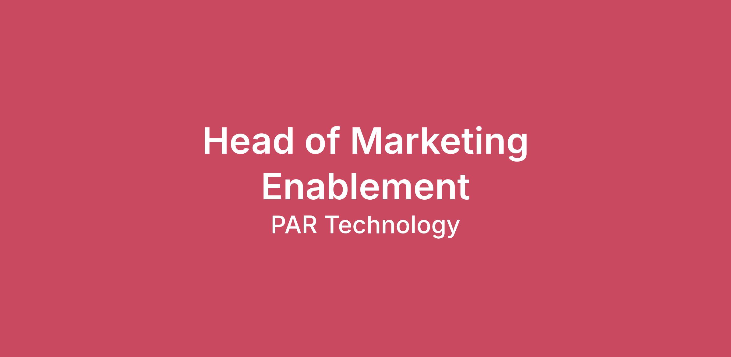 For over four decades, PAR Technology Corporation (NYSE: PAR) has been a leader in restaurant technology, empowering brands worldwide to create lasting connections with their guests. Our innovative solutions and commitment to excellence provide comprehensive software and hardware that enable seamless experiences and drive growth for over 100,000 restaurants in more than 110 countries. Embracing our "Better Together" ethos, we offer Unified Customer Experience solutions, combining point-of-sale, digital ordering, loyalty and back-office software solutions as well as industry-leading hardware and drive-thru offerings. To learn more, visit partech.com or connect with us on LinkedIn, X (formerly Twitter), Facebook, and Instagram.Position Description: PAR Technology is seeking a strategic, hands-on Head of Marketing Enablement to build and lead two critical functions: internal team enablement and customer training. This role sits at the intersection of product knowledge, go-to-market strategy, and learning design — ensuring our sales, customer success, and account management teams are fully equipped to position and sell our restaurant technology solutions, while simultaneously empowering customers to get maximum value from our products through PAR Academy.The ideal candidate is part curriculum architect, part content creator, and part cross functional collaborator — someone who can partner with Product Marketing to translate complex product information into compelling training, resources, and tools, and deliver them at scale using modern AI-powered platforms.Position Location:Remote Reports To: VP of MarketingWhat We’re Looking For:Requirements:• 5+ years of experience in sales enablement, revenue enablement, customer education, or a closely related function• Proven track record building and scaling enablement or training programs in a B2B SaaS environment• Strong ability to translate complex product and technical information into clear, compelling training content• Experience working closely with Product Marketing to operationalize messaging and competitive content• Demonstrated experience managing an LMS or customer academy platform• Excellent cross-functional collaboration skills with the ability to influence without authority• Strong project management skills with the ability to manage multiple programs simultaneouslyTools & Technology:ElevenLabs - AI voice generation for scalable, high-quality training content productionIntellum - LMS platform for PAR Academy (customer) and internal training deliveryGong - Conversation intelligence — surfacing knowledge gaps and informing enablement prioritiesSalesforce - CRM integration for tracking certifications, enablement activity, and performanceCanva - Branded visual content for battle cards, enablement assets, and training materialsAI Tools (general) - AI-native content workflows for scripting, narration, and scalable training production Additional skills:• Experience in restaurant technology, hospitality tech, or adjacent vertical SaaS• Familiarity with enterprise GTM motions including complex sales cycles and multistakeholder accounts• Prior experience managing or mentoring a teamUnleash your potential: What you will be doing and owning:Internal Team Enablement:Design and lead a scalable, ongoing training program for Sales, Account Management, and Customer Success teams, covering:• Product knowledge, positioning, and messaging across all restaurant technology solutions• Sales battle cards, objection handling frameworks, and competitive positioning — developed in close partnership with Product Marketing• New feature rollouts and product updates, ensuring GTM teams are informed and prepared ahead of each launch• New hire onboarding curriculum to ramp Sales, AM, and CS hires quickly and confidently• Ongoing reinforcement training to keep teams current as the product portfolio evolvesPartner with Product Marketing to:• Consume competitive intelligence and win/loss insights developed by PMM, then package and distribute them in actionable, field-ready formats• Align all enablement content with approved messaging, positioning frameworks, and go-to-market strategy• Co-develop launch enablement plans for new products and major feature releasesCustomer Training & PAR Academy:• Own and manage PAR Academy — PAR's customer-facing learning management system and training program• Develop and maintain a comprehensive library of customer training content including courses, certifications, how-to guides, and product walkthroughs• Create structured learning paths tailored to different customer roles (operators, IT, managers) and product lines• Drive customer adoption and product proficiency through proactive training initiatives tied to onboarding and ongoing success motions• Measure and report on training effectiveness, completion rates, and the impact of training on customer outcomes and retention• Continuously update content to reflect product changes, customer feedback, and evolving best practicesStrategy, Operations & Cross-Functional Collaboration:• Establish and track KPIs for both internal enablement and customer training programs• Build a scalable content infrastructure using AI-powered tools to produce high quality training materials efficiently and at speed• Collaborate with Sales leadership, CS leadership, and Product to identify knowledge gaps and prioritize enablement investments• Maintain a centralized, well-organized resource library accessible to all GTM team membersInterview Process:Interview #1: Phone Screen with Talent Acquisition TeamInterview #2: Video interview with the Hiring Manager (via MS Teams)Interview #3: Video interview with the Team (via MS Teams)PAR is proud to provide equal employment opportunities (EEO) to all employees and applicants for employment without regard to race, color, religion, sex, national origin, age, disability or genetics. We also provide reason