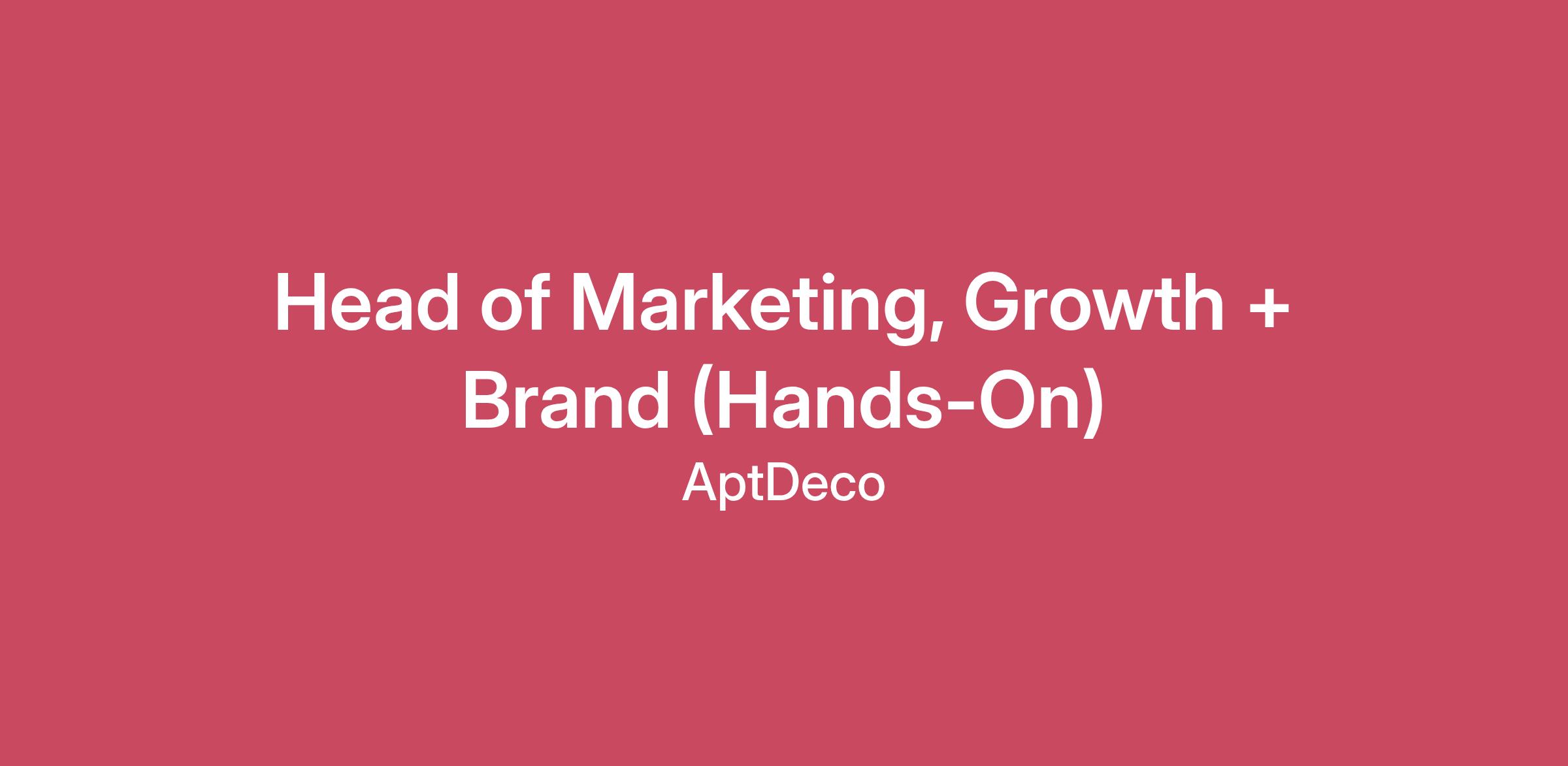 Head of Marketing, Growth + Brand (Hands-On)