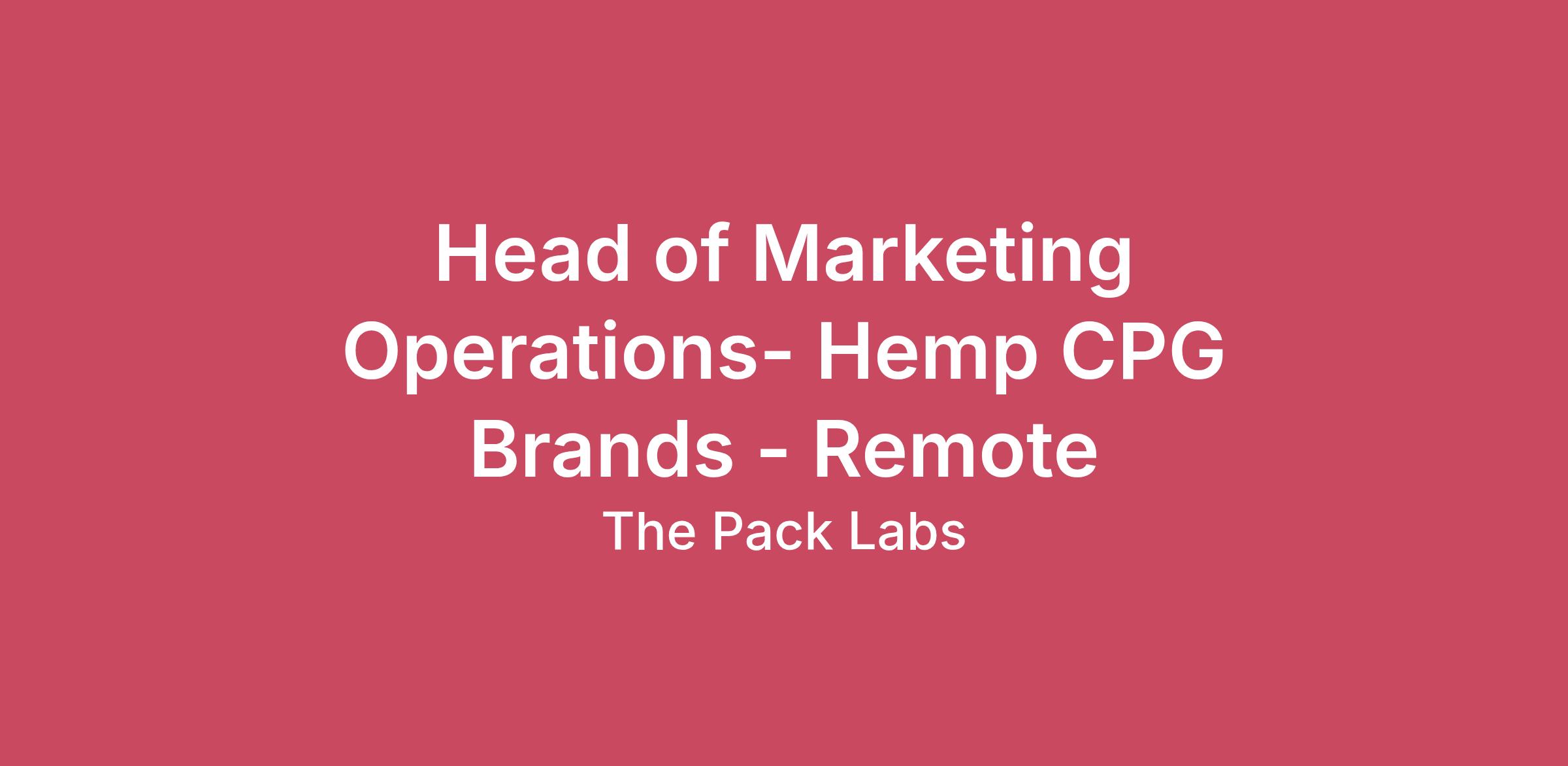 We’re looking for a Head of Marketing Operations who’s obsessed with data, systems, and precision execution. This isn’t a “make it pop” creative role; it’s about building the machine that makes marketing run smarter, faster, and more profitably. At The Pack Labs, home to cannabis and hemp industry leaders MUNCHIES! (formerly Delta Munchies) and Imperial Extraction, you’ll lead the full marketing team, own all paid and organic media, and design the systems, workflows, and reporting frameworks that keep the business scaling efficiently.If you’ve scaled brands in regulated industries, love growth, live in dashboards, thrive on process, and love turning chaos into clarity, this is your playground.What You’ll DoLead the full marketing ecosystem - paid media, lifecycle, creative ops, analytics, and trade.Build and manage the systems that make marketing run smarter, faster, and more profitably.Own marketing data, forecasting, and performance dashboards; translate insights into strategy.Oversee all growth channels (Meta, Google, SEO, affiliates, influencers, lifecycle).Architect scalable workflows and reporting processes across departments.Collaborate cross-functionally with Sales, Product, and Finance to align forecasts and growth goals.Partner with the creative team to translate performance data into winning campaigns.Build, mentor, and develop a high-performing marketing team that thrives on accountability and innovation.What You Bring8 -12 years of experience in marketing operations, growth, or performance leadership.Strong data fluency - you live in dashboards and use metrics to drive every move.Exceptional leadership, communication, and project management skills.Hands-on execution mindset - you’re equally comfortable strategizing and rolling up your sleeves.Expertise in acquisition channels and analytics tools (Meta, Google Ads, Looker, GA4, Klaviyo, Shopify, etc.).Process-driven operator who brings structure, accountability, and results.**A Plus+ if you have experience scaling brands within restricted product categories (Cannabis, Alcohol, Supplements, etc.).Why Join UsImpact: Be part of a fast-growing company redefining what’s possible in hemp and alternative wellness.Leadership: Shape the marketing engine of an emerging industry leader.Flexibility: Remote work. Occasionally, travel to our California Office for trade shows or team onsite work.Compensation: $150,000 – $180,000+ & full benefits.Benefits: Unlimited PTO, 401(k), comprehensive health coverage, and a people-first culture.Culture: Join a collaborative, forward-thinking team that values creativity, transparency, and results.