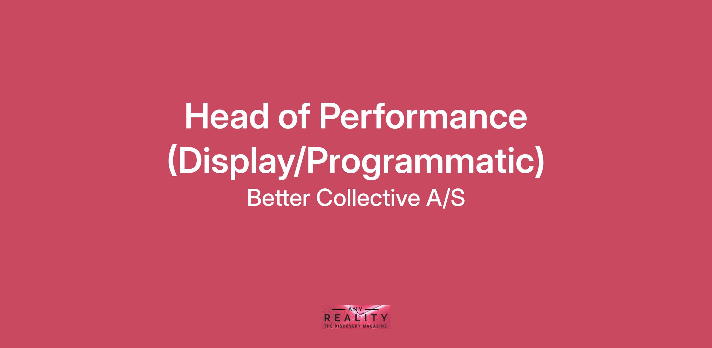 We are seeking a Head of Performance (Display) to lead our Display, Programmatic, and Direct Media Partnerships teams, maximising growth and efficiency across all performance-driven media channels.