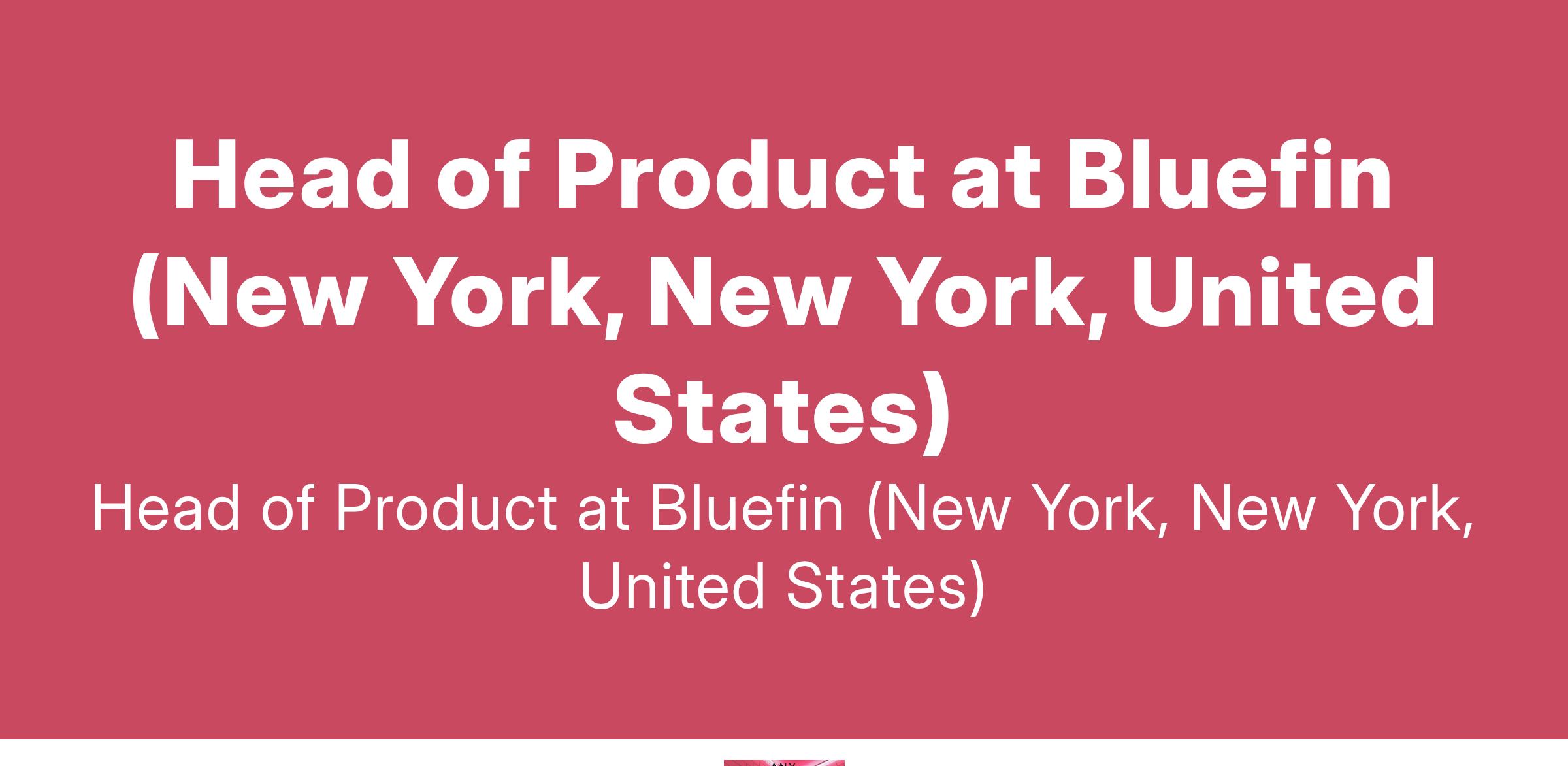 Head of Product at Bluefin (New York, New York, United States)