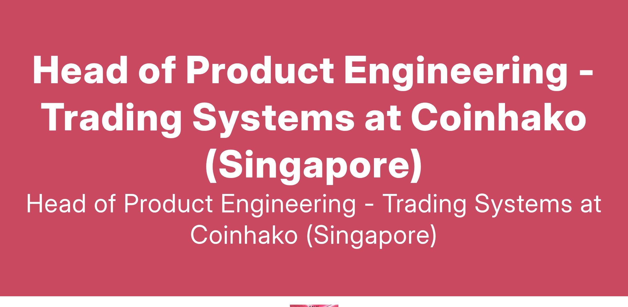 Head of Product Engineering - Trading Systems at Coinhako (Singapore)