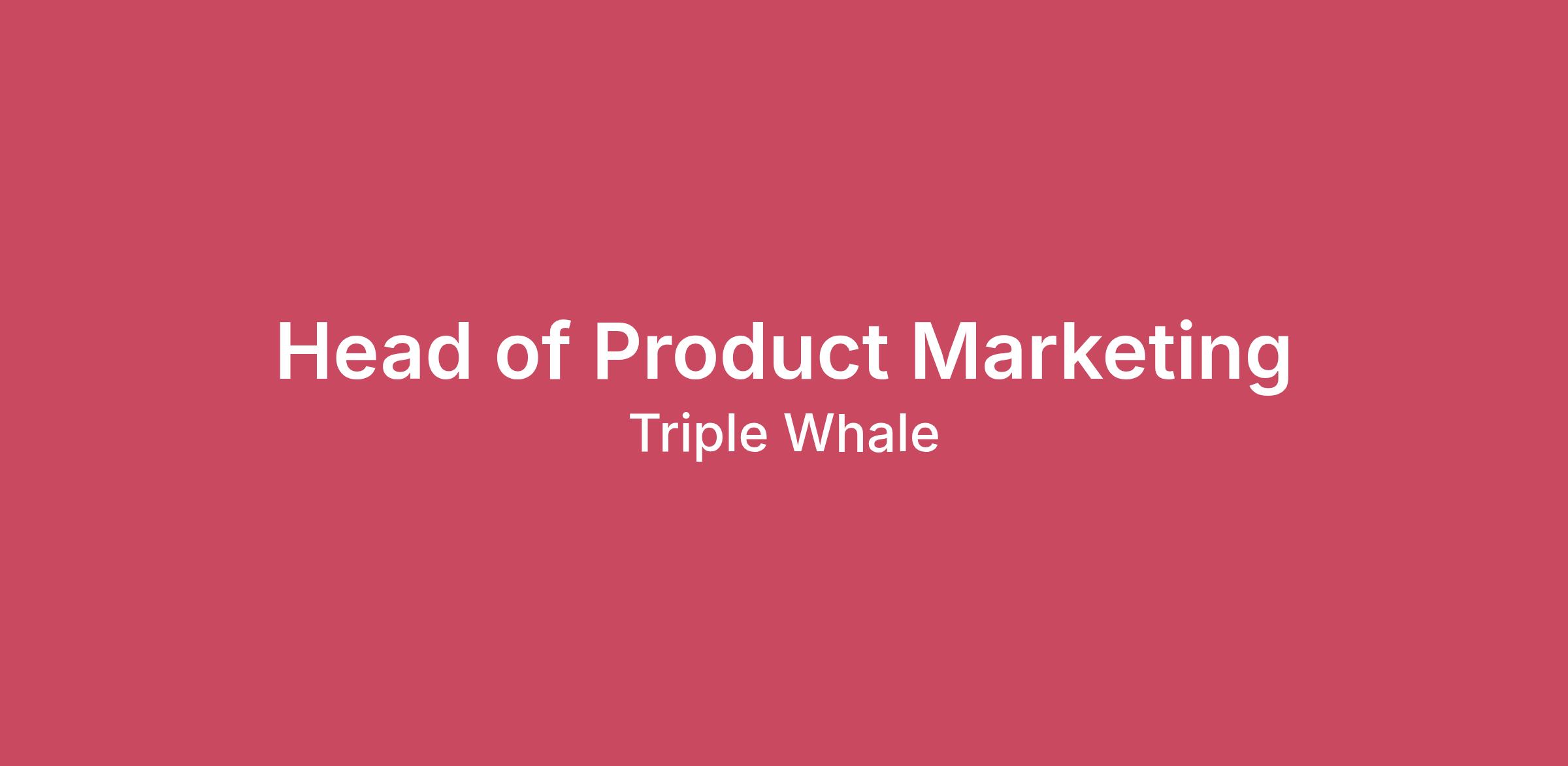 What Do We Do? Triple Whale is the complete intelligence platform that helps ecommerce brands confidently understand what's working in their business, what's not, and what they should do next. We pull all your data into one place, give you the measurement tools to actually trust it, then use the smartest AI in the industry to translate it into insights and recommendations. From there, you get tools to put those insights to work — from AI agents that generate creative and take action on your behalf, to automations that make the rest of your tech stack smarter and more effective. More than 60,000 brands like Pressed Juicery, Ouai and True Classic trust Triple Whale to grow faster with fewer resources — uncovering opportunities and acting on them at a scale that would be impossible manually. What You're Applying for As our product velocity accelerates, we’re looking for a Head of Product Marketing to lead one of the most critical functions in a product-led company. You’ll oversee the full product marketing organization and lead a team of incredibly high-performing PMMs responsible for translating product innovation into market impact. This is not a 0→1 build—you’ll be taking the function from 1→10, building on a strong foundation to scale our narrative, go-to-market motion, and enablement across the company. You’ll serve as the connective tissue between Product, Sales, Marketing, and Revenue, ensuring our roadmap, messaging, launches, and growth programs are aligned and driving real business outcomes. You’ll partner closely with company leadership to shape how Triple Whale shows up in the market, drive product and sales-led growth programs, and build the systems and content engine that power both enterprise and self-serve motions. Ultimately, you’ll ensure our customers and the broader market recognize Triple Whale as the category leader in AI for commerce. What You’ll Do Become the in-house expert on AI, AI agents, business intelligence, and measurement, translating market and competitive insights into clear positioning, pitch updates, and analyst briefings. Own the go-to-market strategy across the product portfolio, partnering with Product on monthly and quarterly launches while driving always-on programs that increase adoption, expansion, and revenue impact. Lead and develop the Product Marketing team, evolving and refining scalable processes, frameworks, and operating systems that support rapid product innovation and company growth. Oversee the creation of high-impact enablement and content—including use-case guides, demo videos, webinars, and sales playbooks—that shorten deal cycles and increase attach rates. What You’ll Bring: 7+ years of product marketing experience in high-growth B2B SaaS, including formal product marketing roles at AI or data-driven software companies, with a track record of leading positioning, messaging, and go-to-market for complex technical products. Proven leadership experience managing and developing product marketing teams, with responsibility for setting strategy, prioritization, and creating the structure that allows the team to execute effectively even in fast-moving, ambiguous environments. Demonstrated success owning end-to-end go-to-market strategy across both product-led and sales-led motions, partnering closely with Product, Sales, and Marketing leadership to launch new capabilities, drive adoption, and translate product innovation into measurable revenue impact. Ecommerce and commerce enablement experience is a strong plus, the ideal candidate understands the realities of modern ecommerce while also pushing the boundaries of how AI and data can shape the future of commerce. Our Values We Are Customer Obsessed: From our mission to every detailed project, everything we do is designed to create a positive impact for our customers. We Move (Very!) Quickly: The speed at which we work, iterate, and deliver value is our most competitive advantage. We Are Trustworthy: Candor, directness, and honest communication helps us learn, grow and improve so we can win together. We Are Curious: We extend beyond our comfort zone and ask questions that guide us towards new, creative, and bold paths. We Act Like A Mensch: We act with honor, integrity and empathy, and have deep respect for our customers and each other. Base Compensation Range: 160,000 - 175,000 Our compensation ranges are set using benchmarks from growth-stage companies and factor in function, level, and location- so everything stays above board and whale-balanced. The range you sea on each job posting shows the minimum and maximum target salary for new hires across all U.S. locations. Triple Whale is an equal opportunity employer. We celebrate diversity and are committed to creating an inclusive environment for all employees. Join Us in Making Waves If you’re looking for more than just a job and want to be part of a movement reshaping the future of Ecommerce, Triple Whale is the place for you. We’re on the lookout for driven, curious, and creative individuals ready to thrive in a fast-paced environment. Referred? Got here thanks to a friend? Splash some gratitude their way! They'll need to submit your application through our referral system to make it official. #LI-Remote