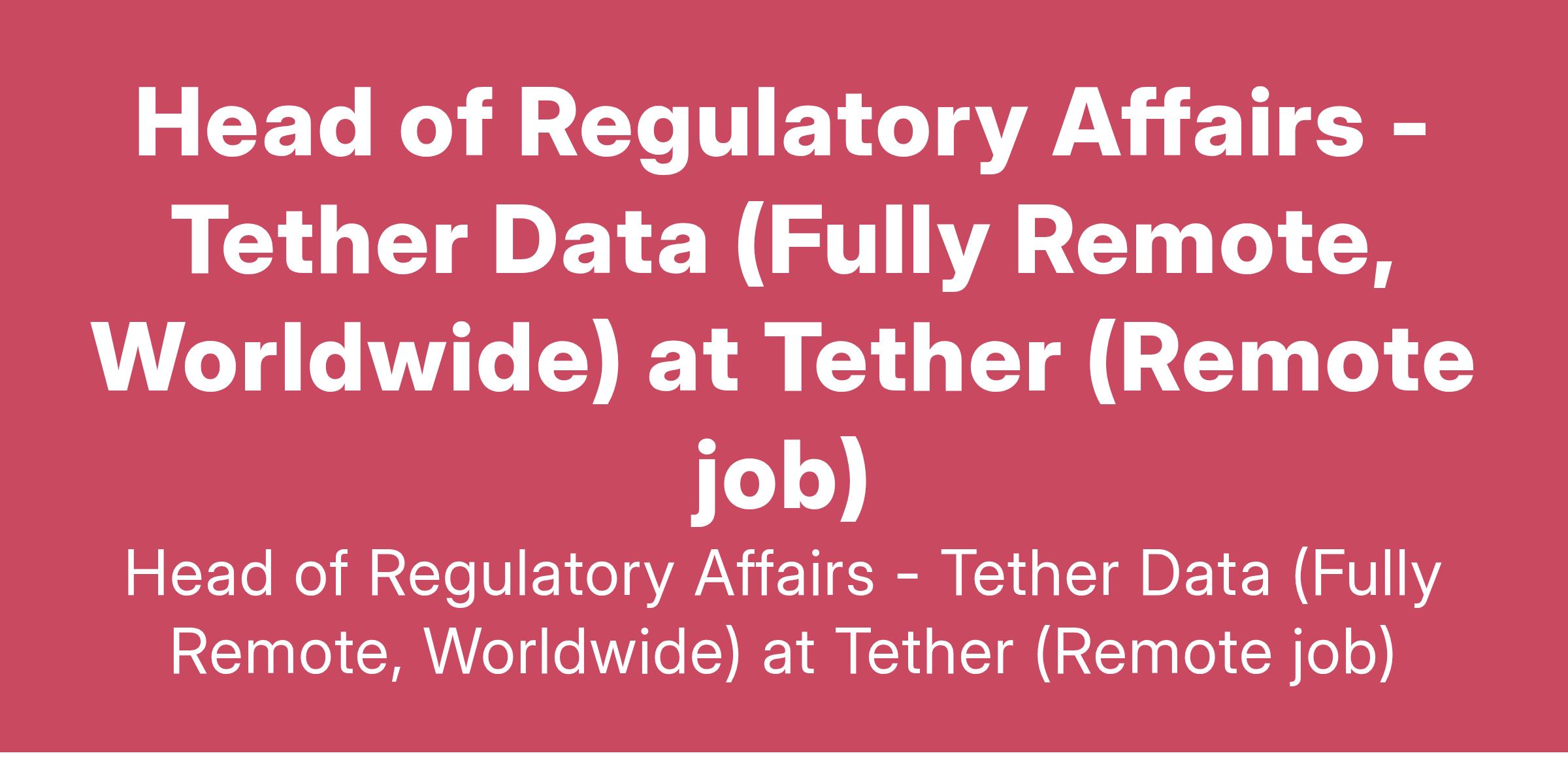 Head of Regulatory Affairs - Tether Data (Fully Remote, Worldwide) at Tether (Remote job)