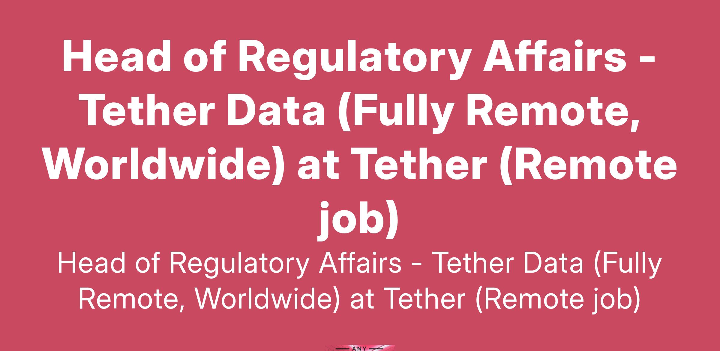 Head of Regulatory Affairs - Tether Data (Fully Remote, Worldwide) at Tether (Remote job)