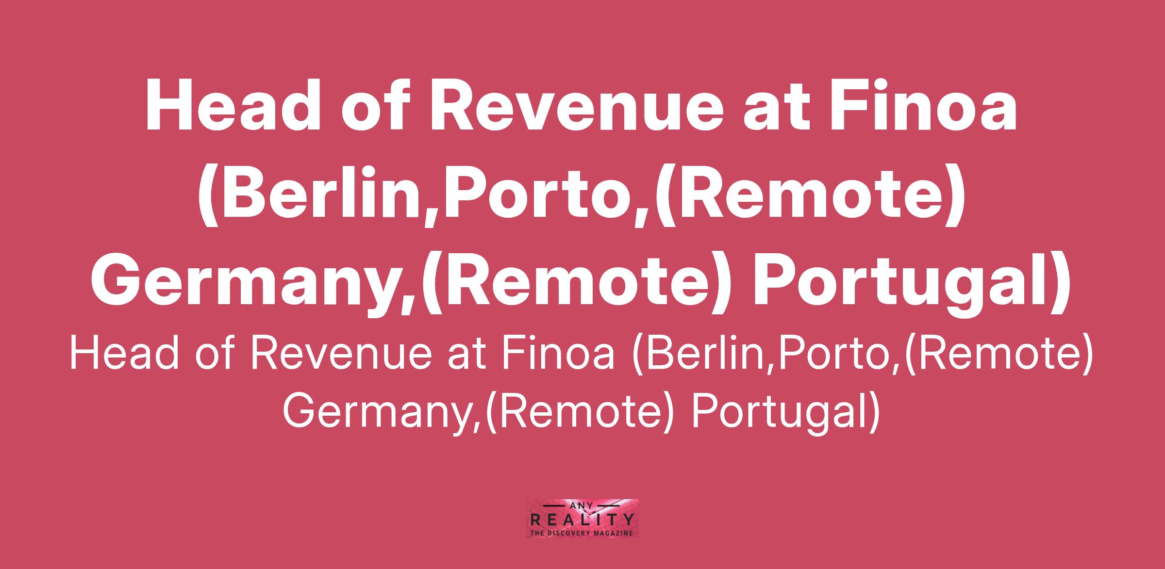 Head of Revenue at Finoa (Berlin,Porto,(Remote) Germany,(Remote) Portugal)