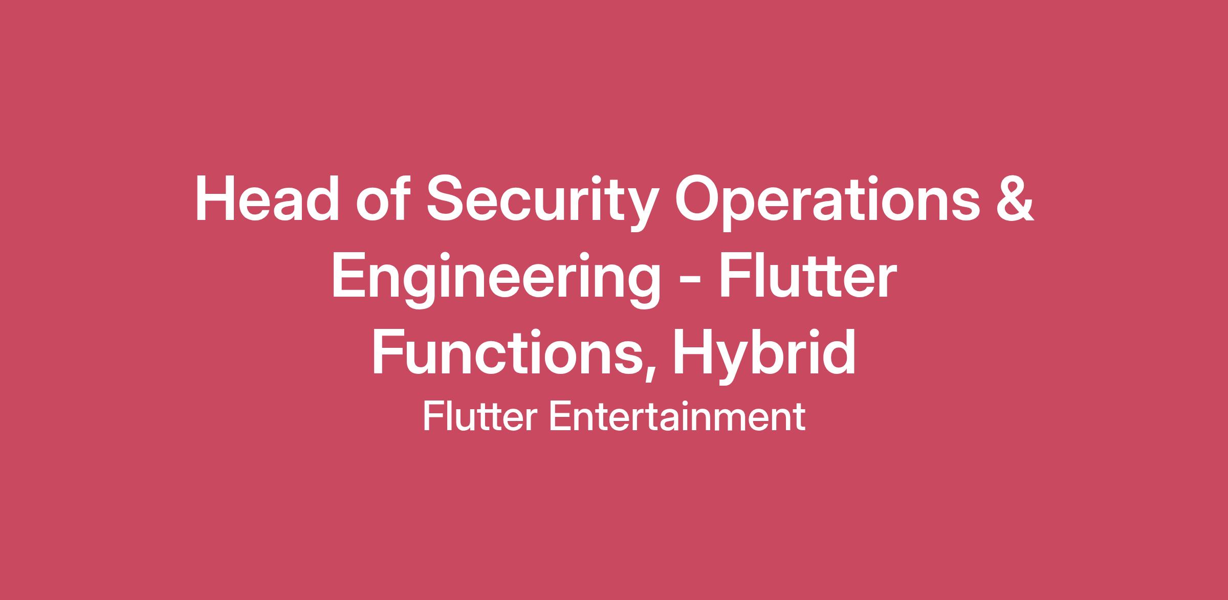 Head of Security Operations & Engineering - Flutter Functions, Hybrid