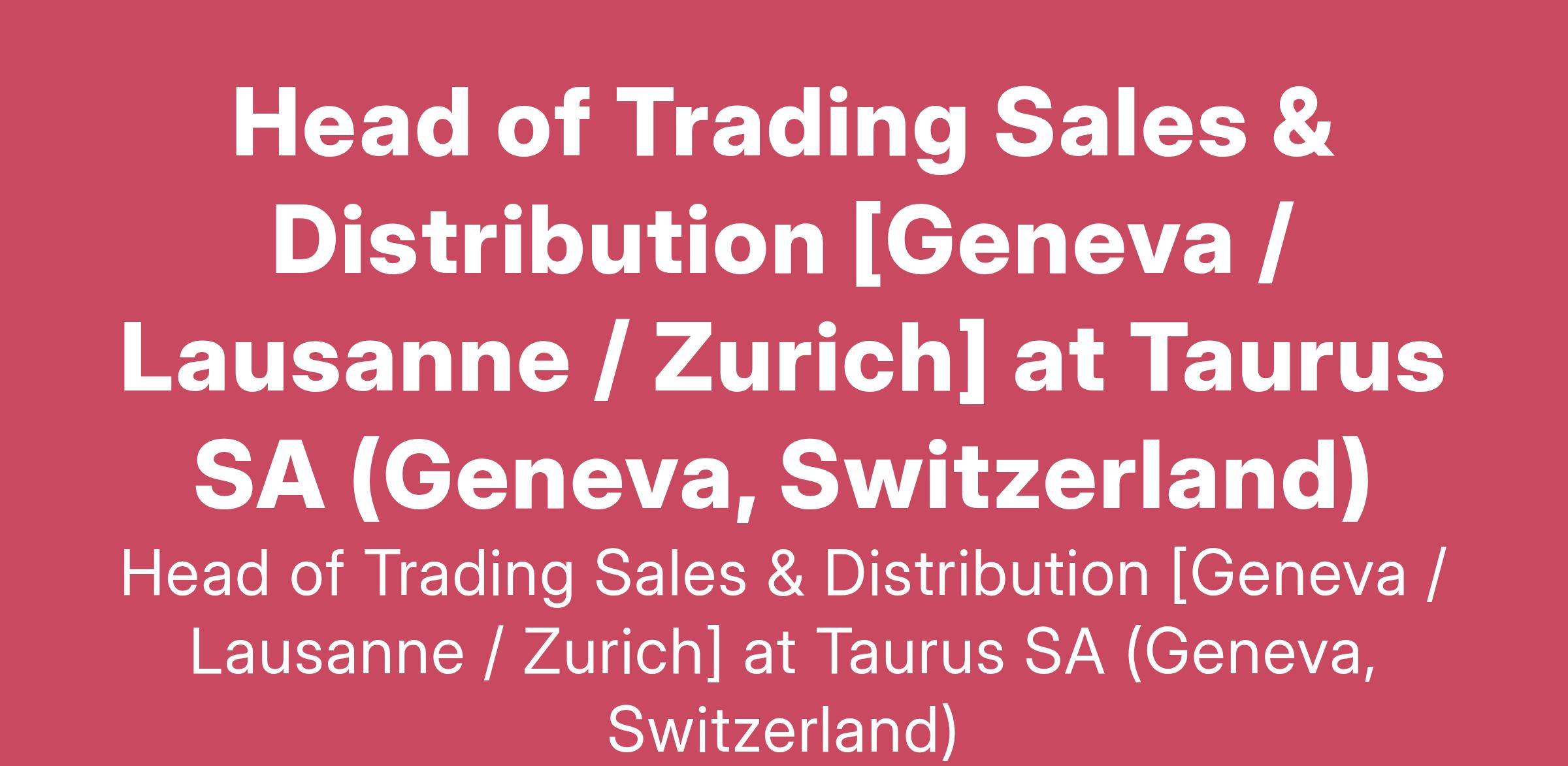 Head of Trading Sales & Distribution [Geneva / Lausanne / Zurich] at Taurus SA (Geneva, Switzerland)