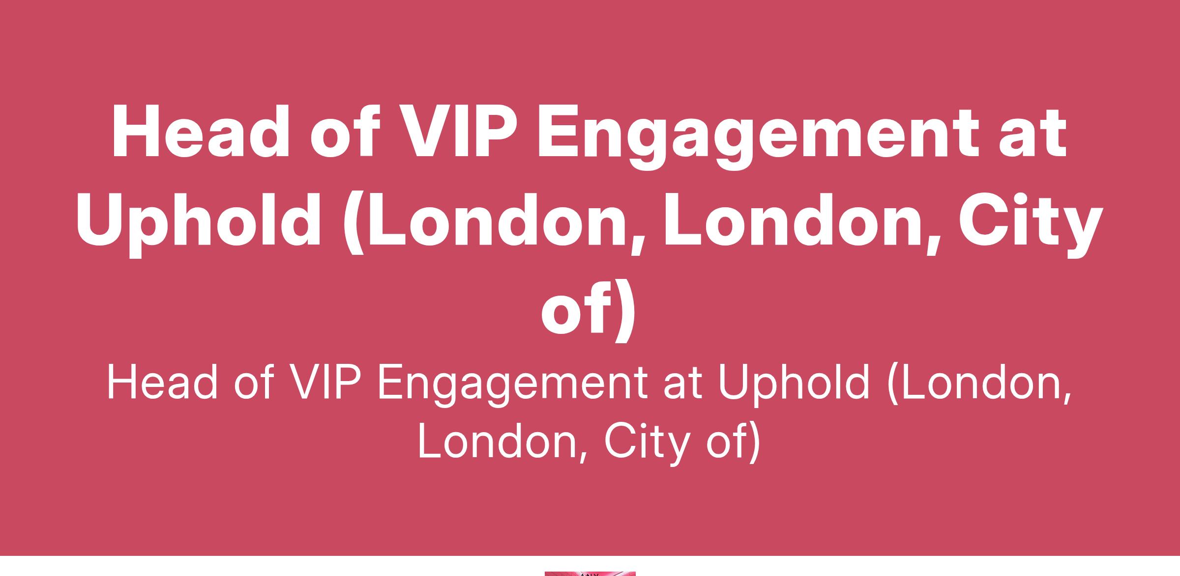 Head of VIP Engagement at Uphold (London, London, City of)