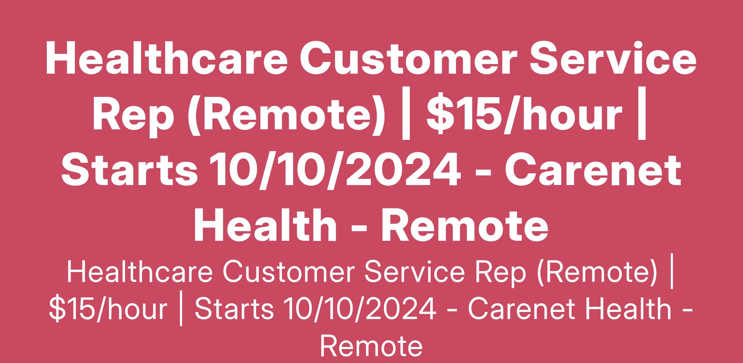 At Carenet Health, we value the expertise and dedication of our team members, and we are committed to offering an appealing compensation package. The wage for the Healthcare Customer Service Representative is $15.00 per hour.