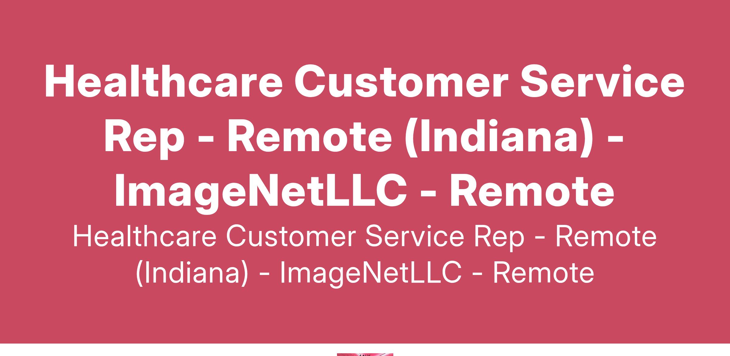 Healthcare Customer Service Rep - Remote (Indiana) - ImageNetLLC - Remote