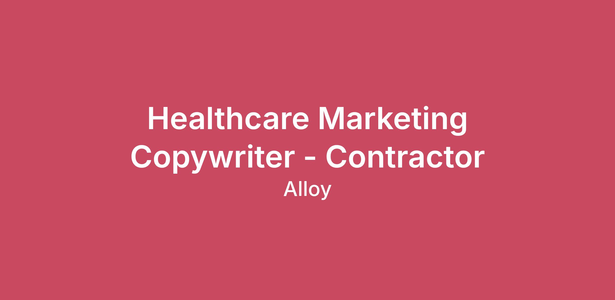 Healthcare Marketing Copywriter - Contractor(On-Call/Project-Based)Atlanta, GARemote or Hybrid Alloy is seeking experienced, strategic Contract Healthcare Marketing Copywriters to join our freelance creative bench. We are looking for seasoned pros who can jump into active projects and deliver high-impact copy for our diverse portfolio of healthcare and hospital system clients on an as-needed basis.This is a contract, remote position designed to support specialized client needs.The RoleAs a contract writer for Alloy, you aren’t just "filling in." You are a strategic partner responsible for:Strategizing: Quickly grasping client objectives and contributing to strategic messaging.Crafting: Developing the "big idea" and ensuring the creative hook aligns with healthcare and hospital industry nuances.Writing: Executing flawless copy across digital (web, email, social), advertising (videos, print, digital), and long-form (brochures, annual reports, whitepapers, scripts).Delivering: Providing polished, client-ready drafts that adhere to specific brand voices and strict MLR (Medical, Legal, Regulatory) guidelines.Candidate Profile:We are looking for contractors who function as an extension of our team—reliable, sharp, and deeply familiar with the healthcare and hospital system landscape.Qualifications:Sector Experience: Proven track record writing for B2C and B2B healthcare brands (Hospitals and Healthcare Systems, Specialty Care and Service Lines, HealthTech, Pharma, or MedTech).Strategic Breadth: Ability to pivot from high-level brand strategy to tactical, technical writing for HCP (Healthcare Provider) audiences and across various service lines and specialty care areas.Agency Fluency: You understand the pace of agency life and can hit the ground running with minimal hand-holding.Regulatory Savvy: Familiarity with the constraints of healthcare marketing and the ability to write creatively within those boundaries.Reliability: You meet deadlines every time and are responsive during active project windows. Engagement Details:Format: Project-based contract (1099).Cadence: Work will be assigned on an as-needed basis. Once you are on our "bench," we will reach out with project scopes, timelines, and budgets based on your availability.Location: Remote.Collaboration: You will work closely with Alloy’s Creative Directors and Account Leads via Slack, Zoom, and project management tools. How to Join Our Bench:If your portfolio proves you can navigate the complexities of healthcare marketing with strategic precision and deep industry insight, we want to see your work.Note: Please include a link to your portfolio or 3–5 relevant healthcare writing samples (e.g., a mix of technical long-form and creative campaign work) with your application.