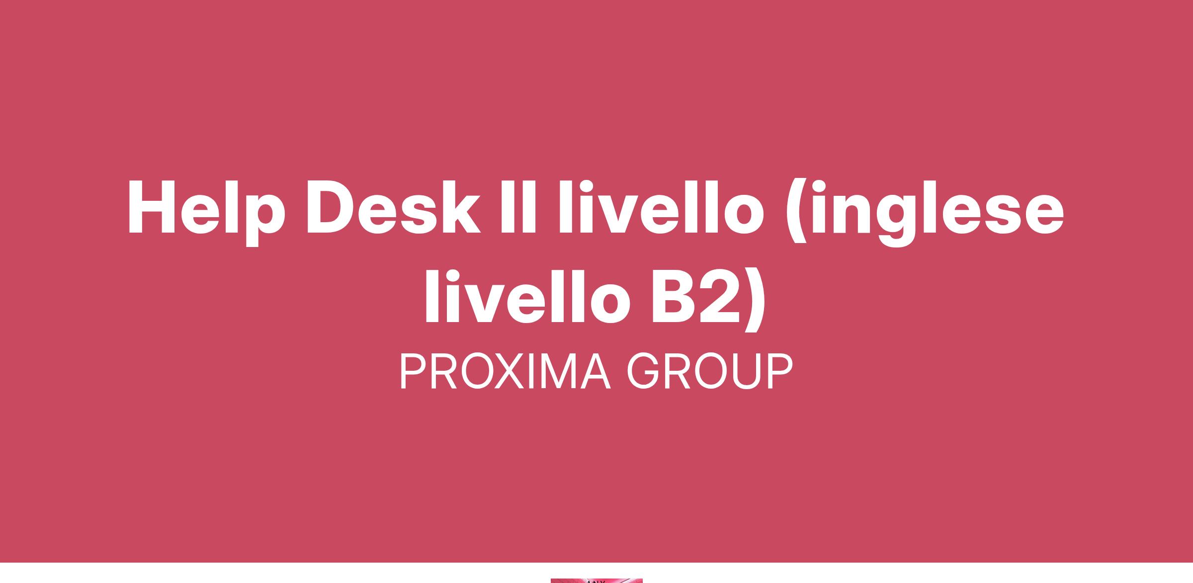 Proxima è un gruppo di aziende con skill funzionali e tecnologiche innovative, che mettono a fattor comune la propria esperienza in un’offerta congiunta di sviluppo di soluzioni all’interno della nostra Software Factory. Offriamo consulenza e servizi di Application Management e Quality Assurance. Chi cerchiamo? Help Desk II livello (inglese livello B2) Due anni di esperienza nel ruolo Dove e come? Modalità di lavoro ibrida a Milano Di cosa ti occuperai? Sarai impiegato in consulenza in ambito assicurativo all’interno di un team internazionale Hai queste competenze? È mandatorio un buon livello di lingua inglese (B2) Conoscenza delle tematiche assicurative (settore di provenienza) che consentano l’individuazione e la risoluzione dei ticket Sei il candidato/a ideale se… Ottimo standing Voglia di imparare e di operare in contesti sfidanti Capacità di lavorare in team Cosa offriamo? R.A.L. commisurata alla seniority BUONI PASTO (anche in modalità full remote) ASSICURAZIONE SANITARIA CON COPERTURA INTEGRATIVA I nostri benefit PERCORSI DI CARRIERA Abbiamo un articolato sistema di valutazione delle competenze e misurazione delle performance che consente al dipendente di crescere insieme a noi. FORMAZIONE PROFESSIONALIZZANTE Offriamo percorsi di formazione e di aggiornamento professionale con taglio tecnico/pratico su tematiche in ambito ICT. SCONTI E PROMOZIONI RISERVATE Abbiamo stabilito degli accordi con delle piattaforme per riservare ai nostri dipendenti scontistica e promozioni esclusive.
