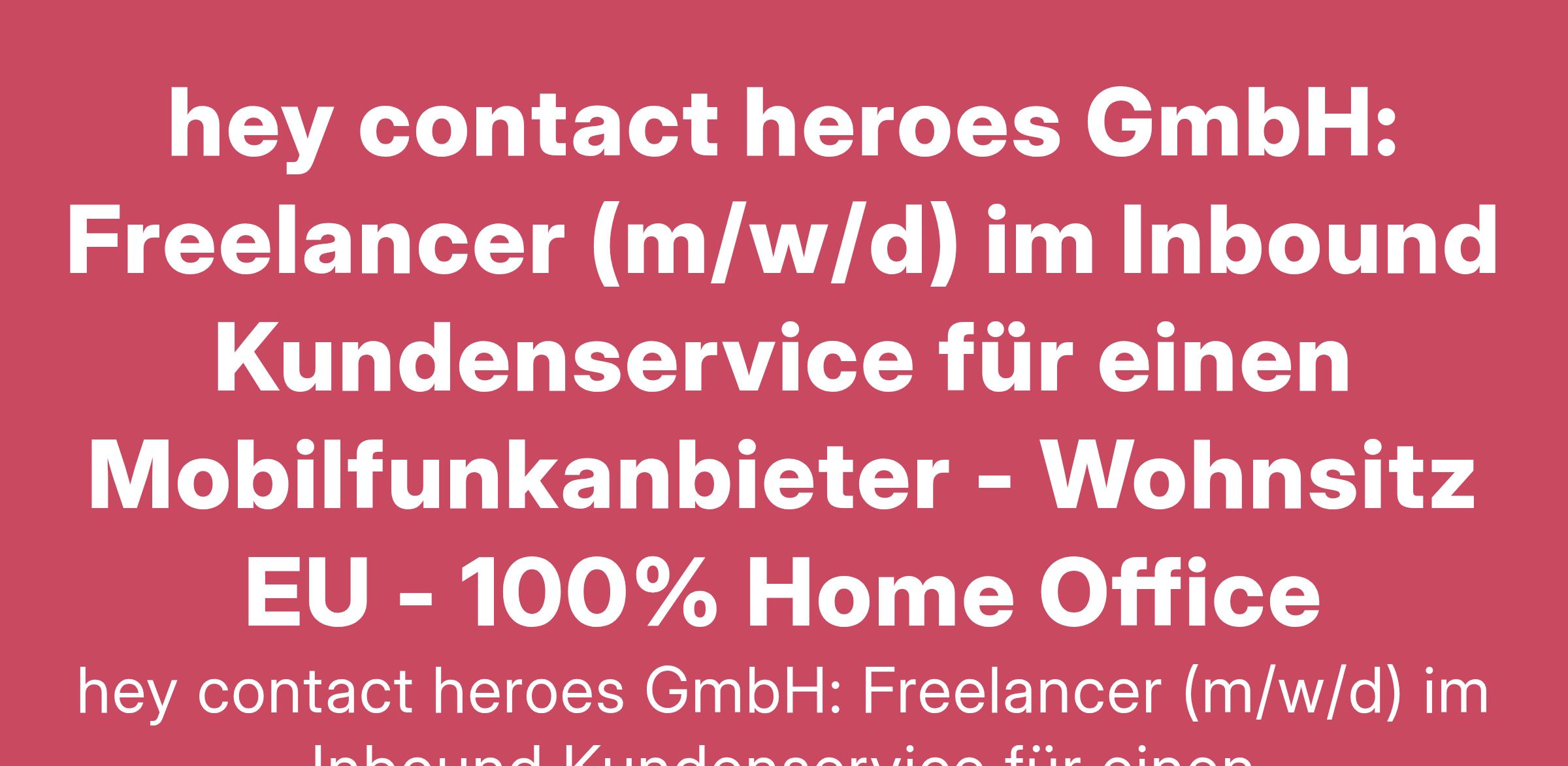 To apply: https://weworkremotely.com/remote-jobs/hey-contact-heroes-gmbh-freelancer-m-w-d-im-inbound-kundenservice-fur-einen-mobilfunkanbieter-wohnsitz-eu-1