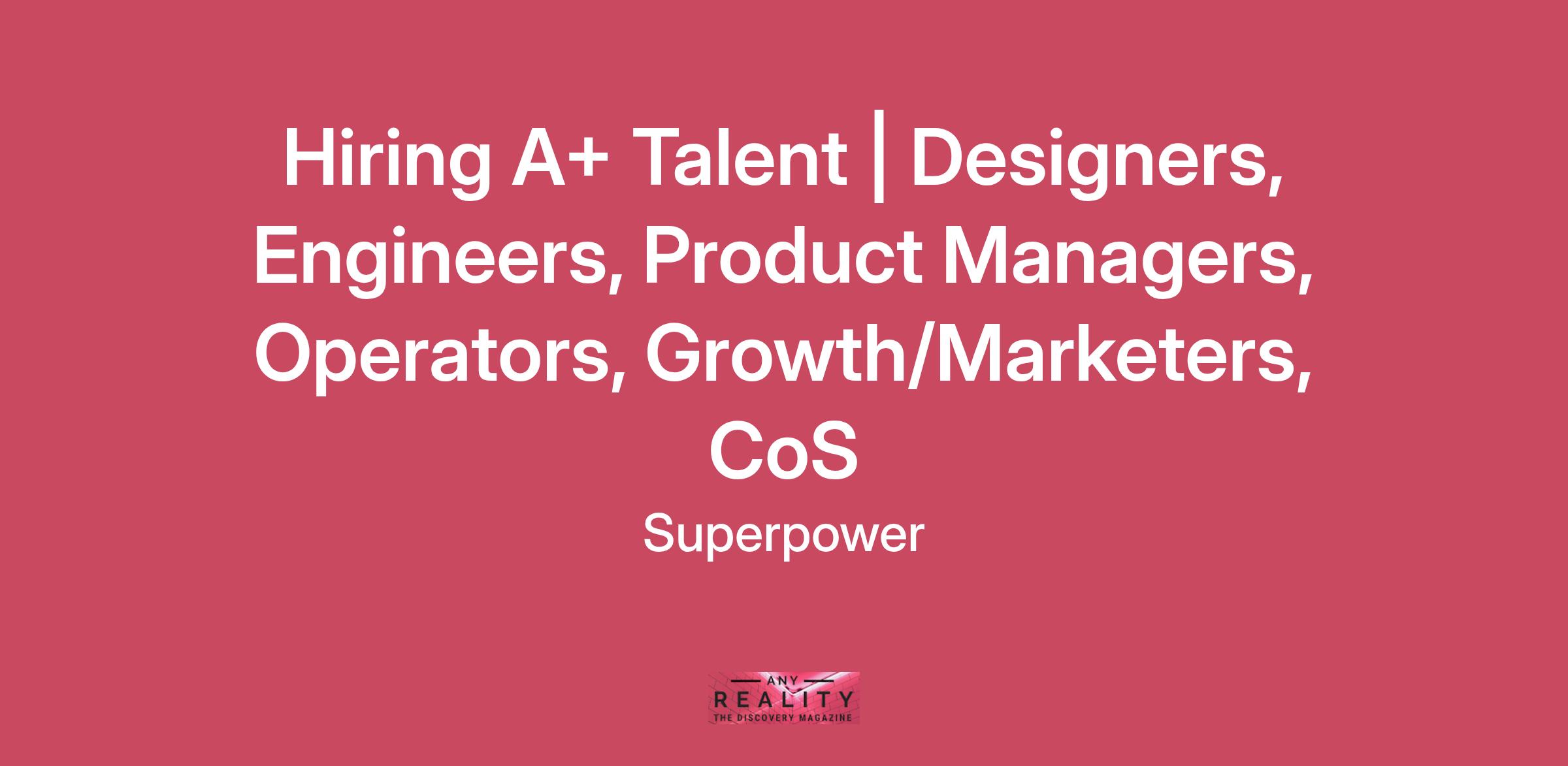 Hiring A+ Talent | Designers, Engineers, Product Managers, Operators, Growth/Marketers, CoS