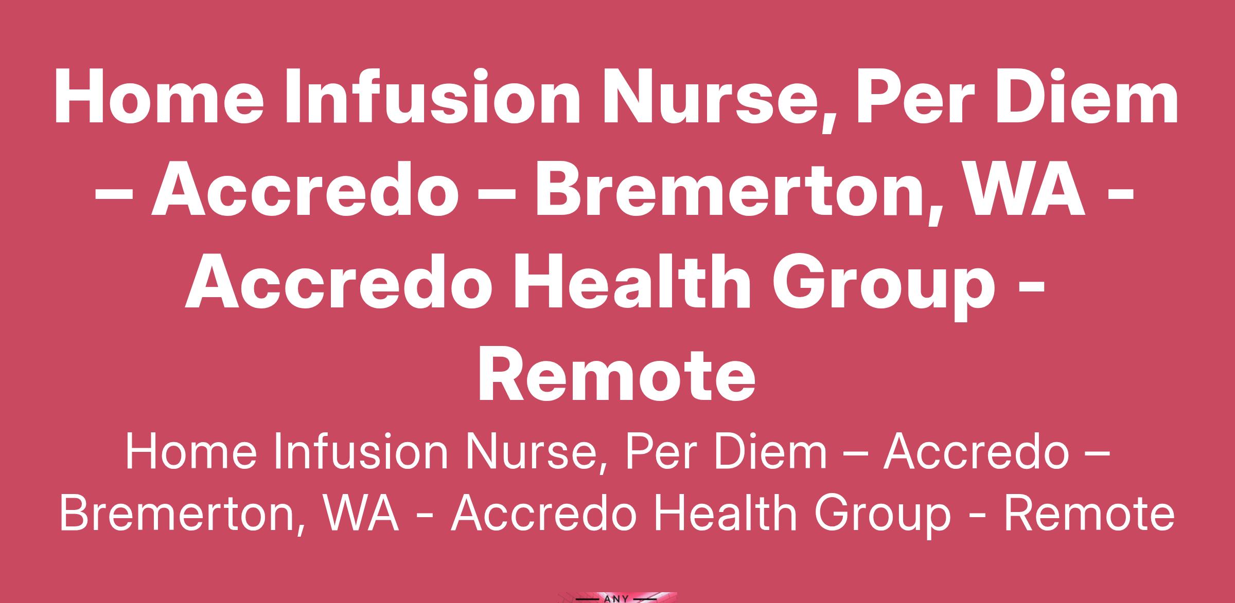Home Infusion Nurse (RN) - Per Diem: