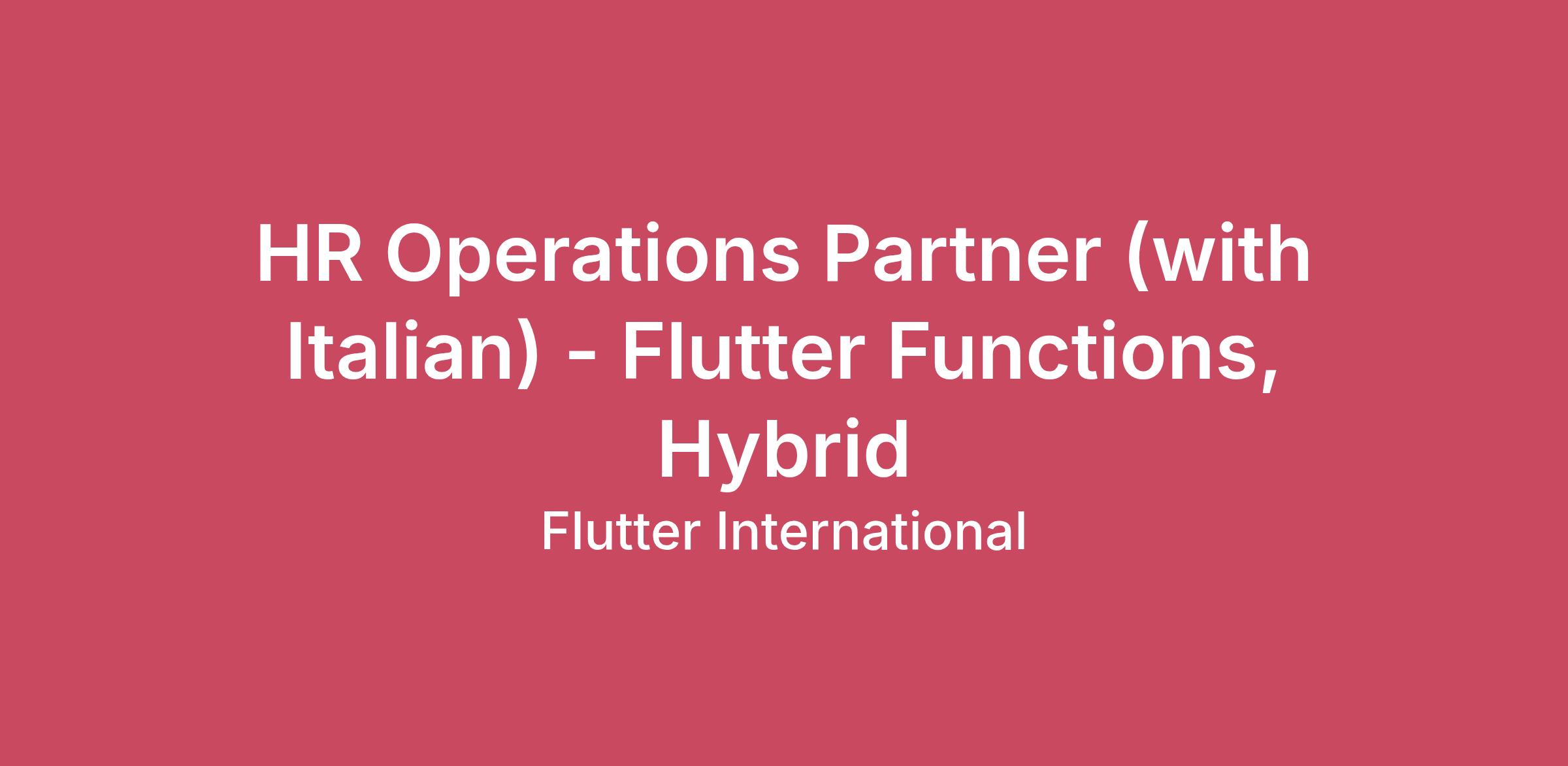 HR Operations Partner (with Italian) - Flutter Functions, Hybrid