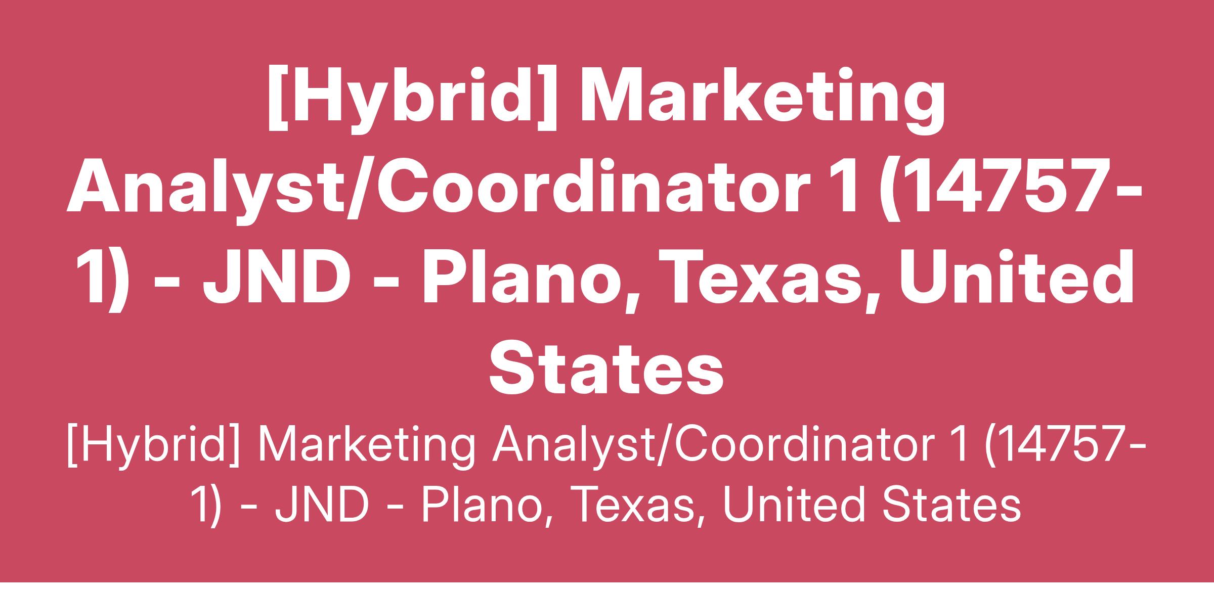 - Job Title: Marketing Analyst/Coordinator 1