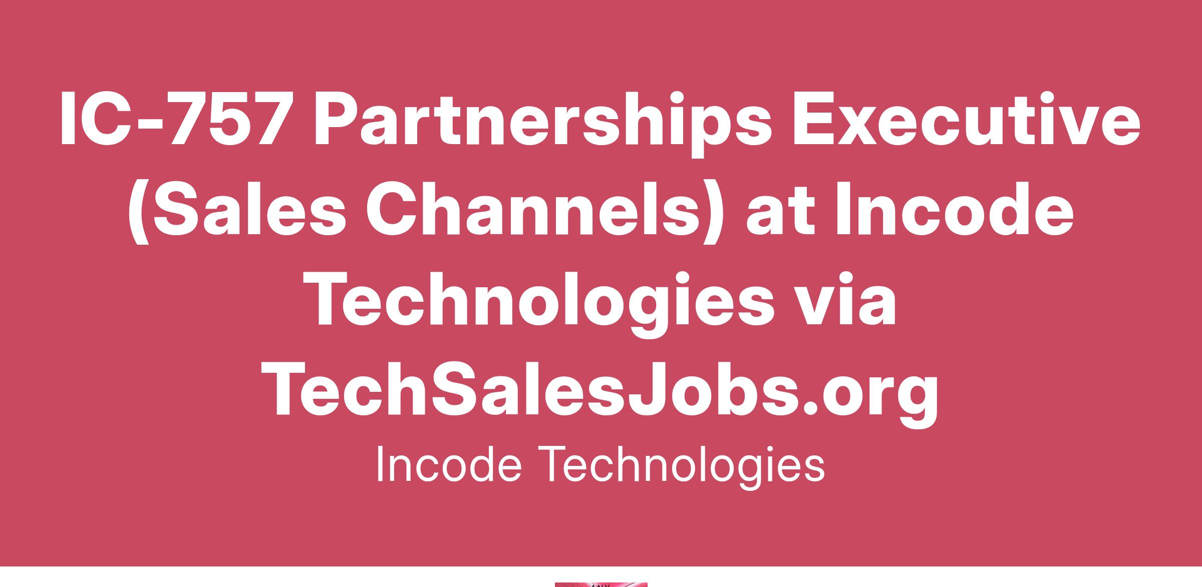 IC-757 Partnerships Executive (Sales Channels) at Incode Technologies via TechSalesJobs.org