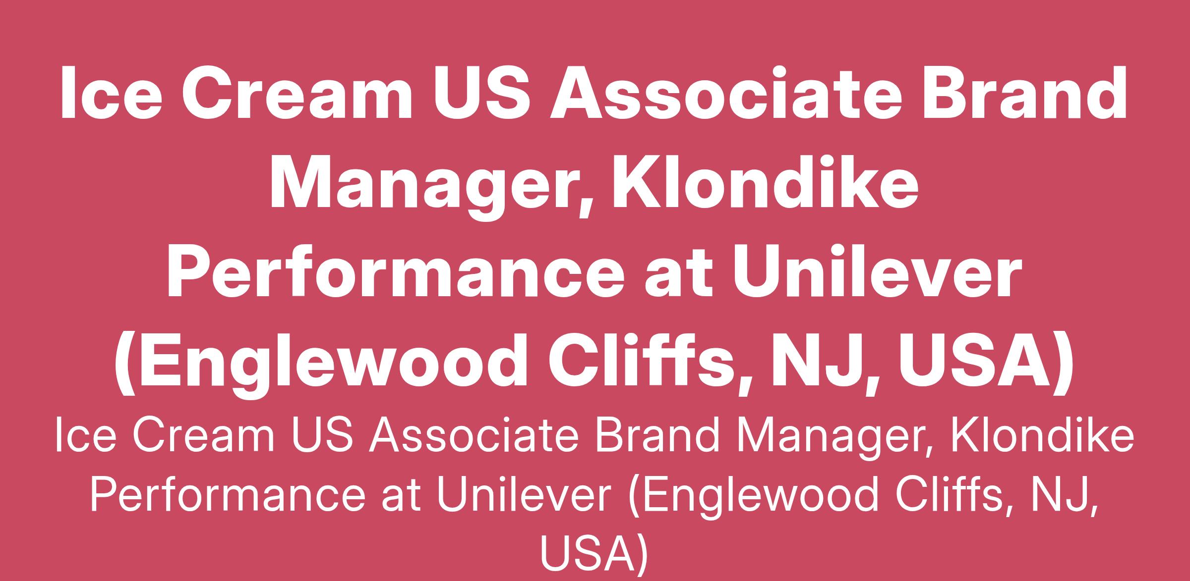 Ice Cream US Associate Brand Manager, Klondike Performance at Unilever (Englewood Cliffs, NJ, USA)