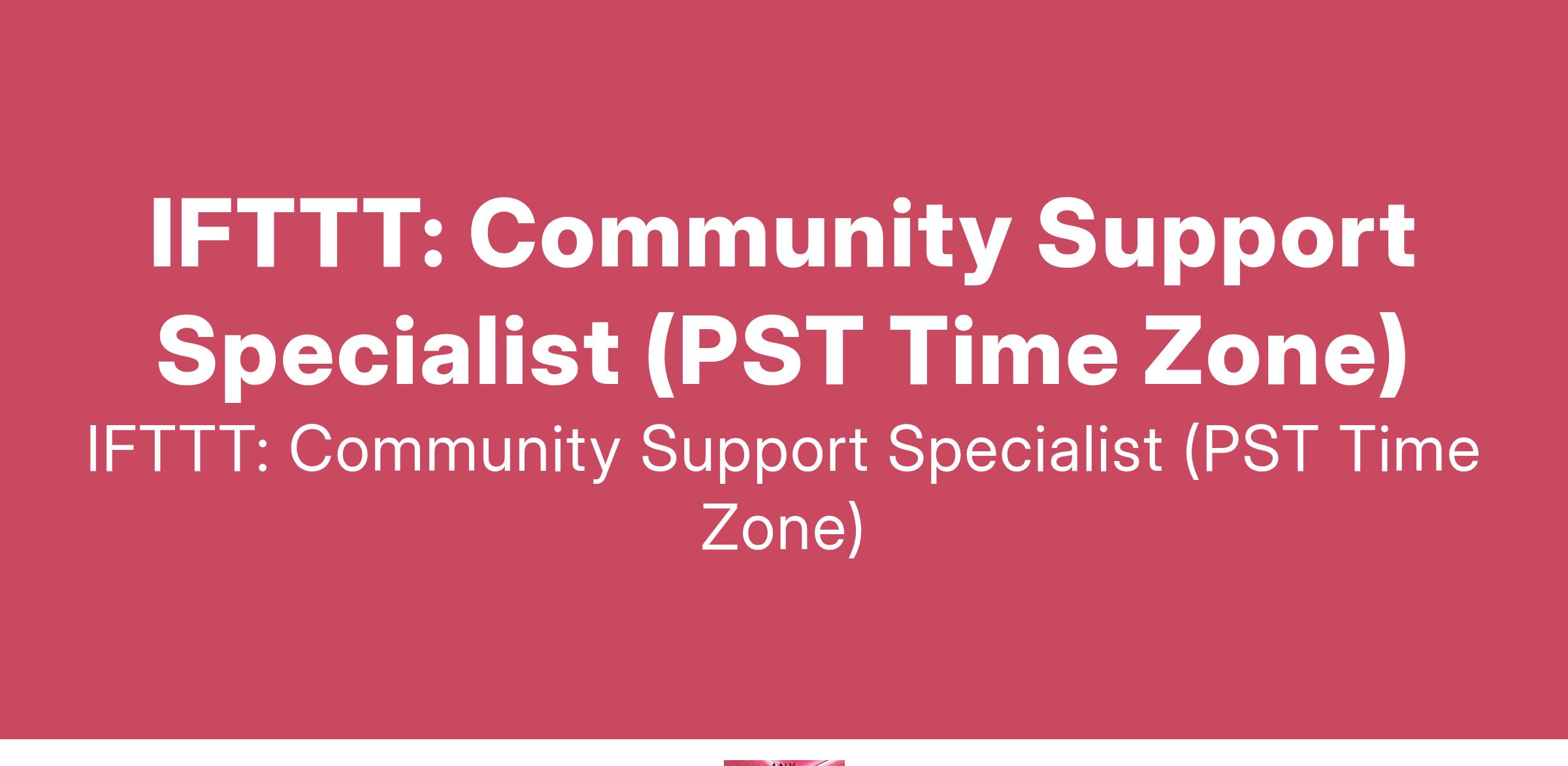 To apply: https://weworkremotely.com/remote-jobs/ifttt-community-support-specialist-pst-time-zone