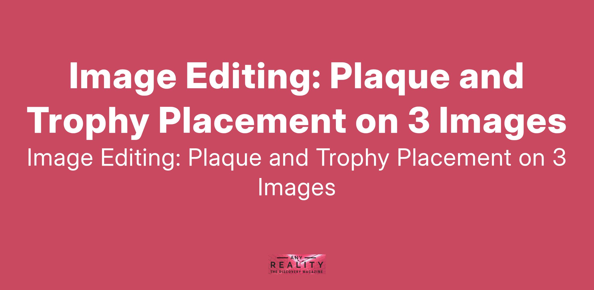 I need a skilled photo editor to help me with a simple project. I have three similar images and a trophy and plaque photo. Your job will be to put the new image of a plaque on two of the photos and the new image of the trophy on two of the photos... (Budget: $10 - $30 AUD, Jobs: Graphic Design, Photo Editing, Photography, Photoshop, Photoshop Design)