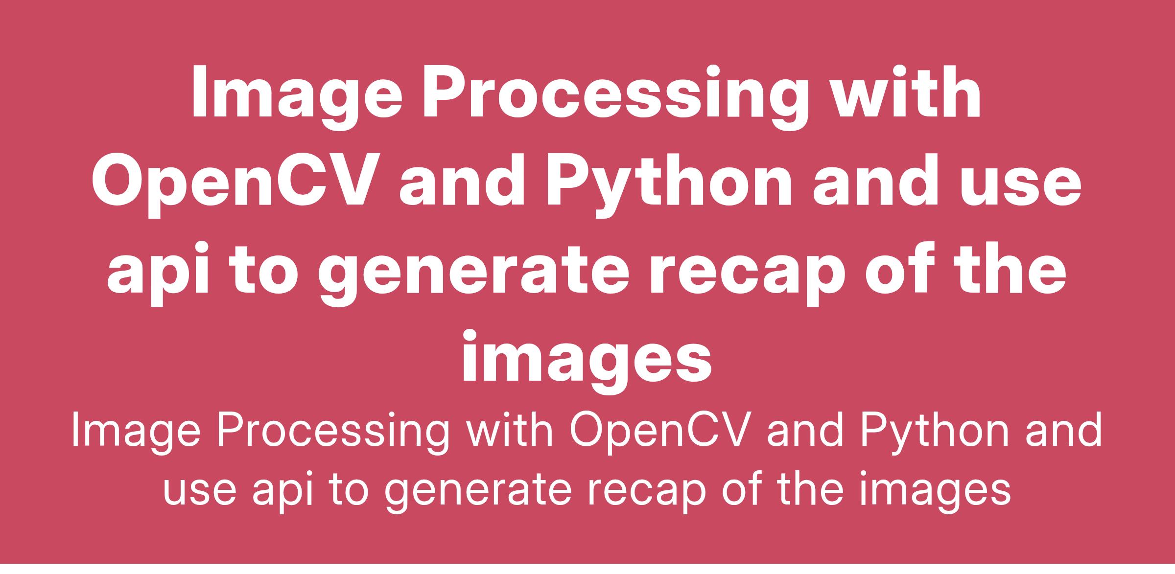 I'm looking for an experienced coder with a strong background in OpenCV, APIs, Node.js, and Python. The primary purpose of this project is to utilize OpenCV for image processing tasks, specifically for image recognition... (Budget: $10 - $100 USD, Jobs: C++ Programming, Coding, JavaScript, Python, Software Architecture)