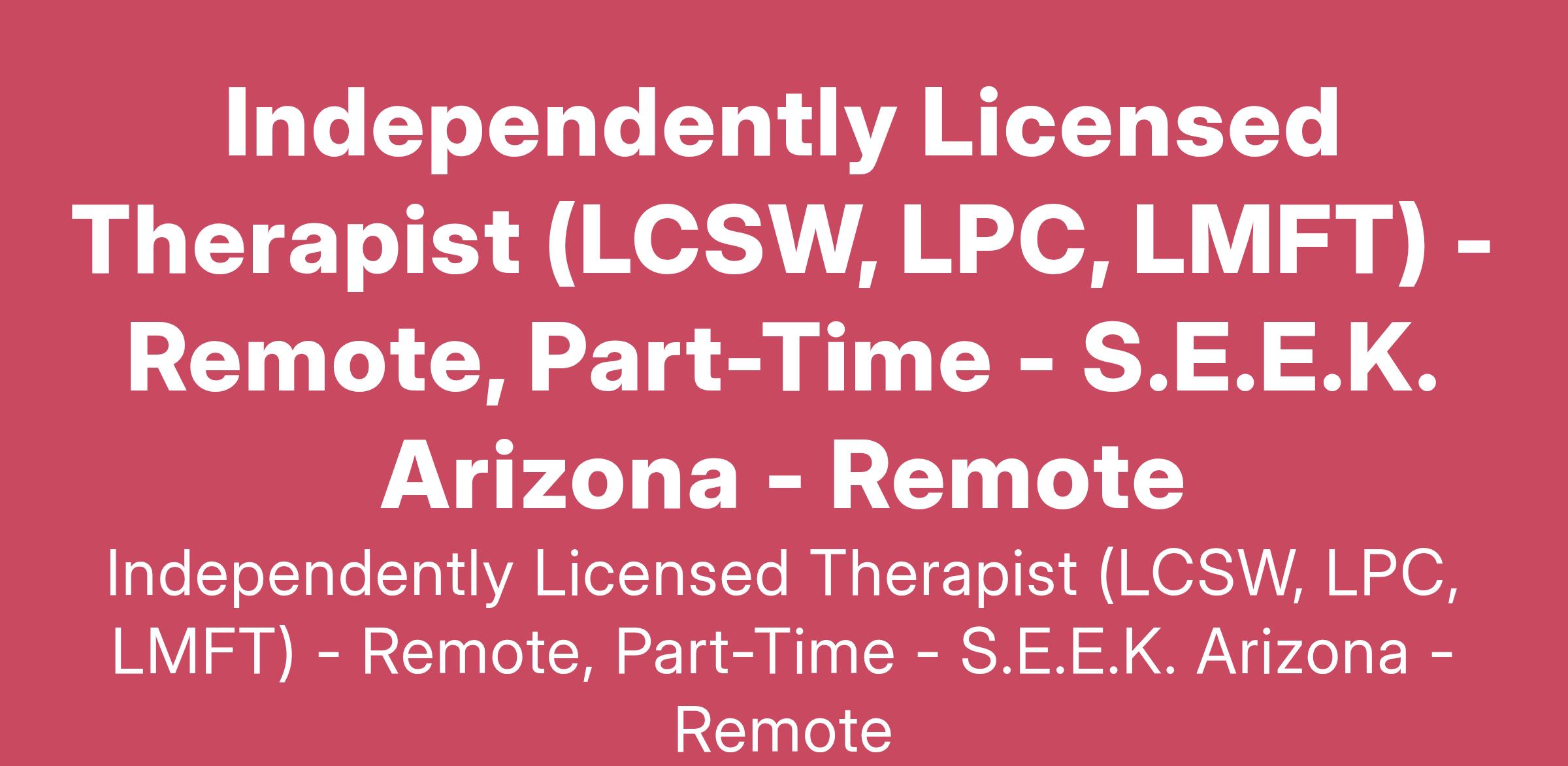 Independently Licensed Therapist (LCSW, LPC, LMFT) - Remote, Part-Time - S.E.E.K. Arizona - Remote