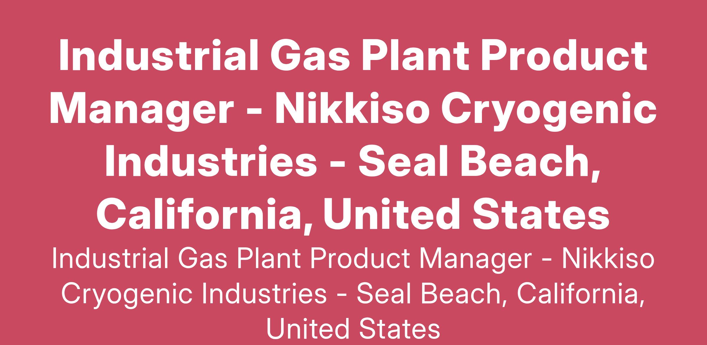 The Industrial Gas Plant Product Manager is responsible for the industrial gas product line which includes air separation plants, nitrogen and oxygen generators and industrial gas liquefiers.