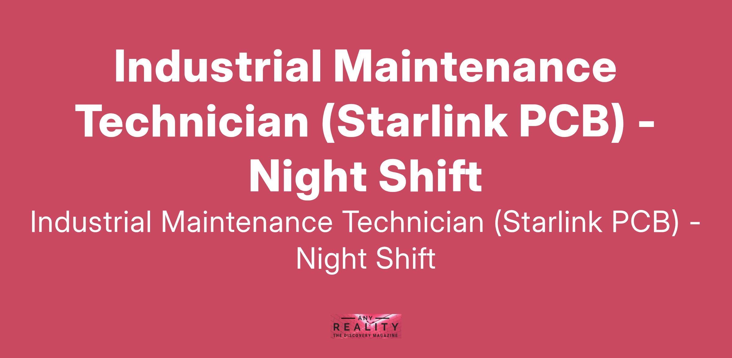 Industrial Maintenance Technician (Starlink PCB) - Night Shift